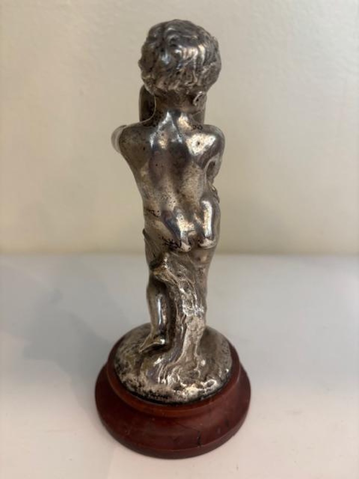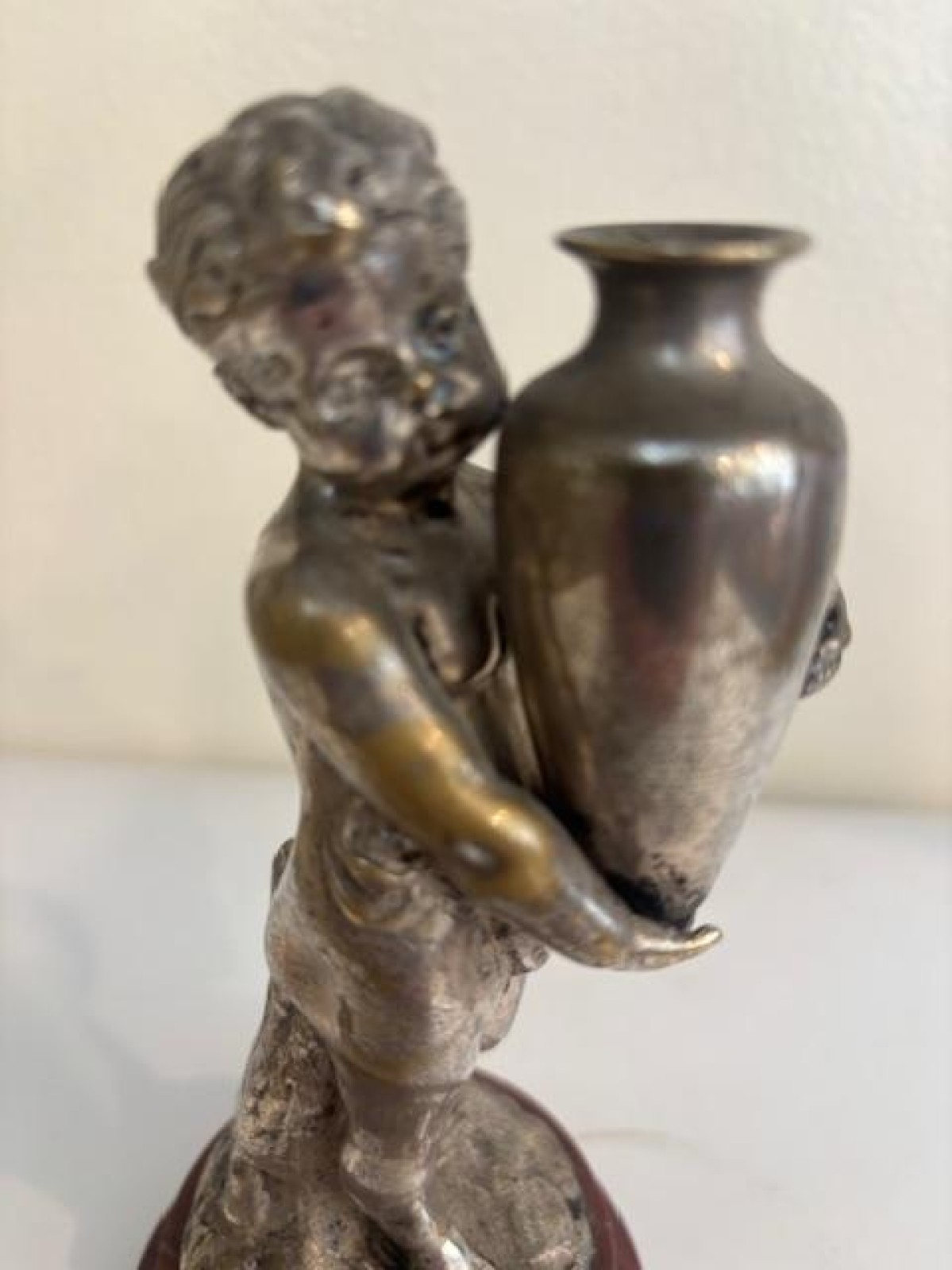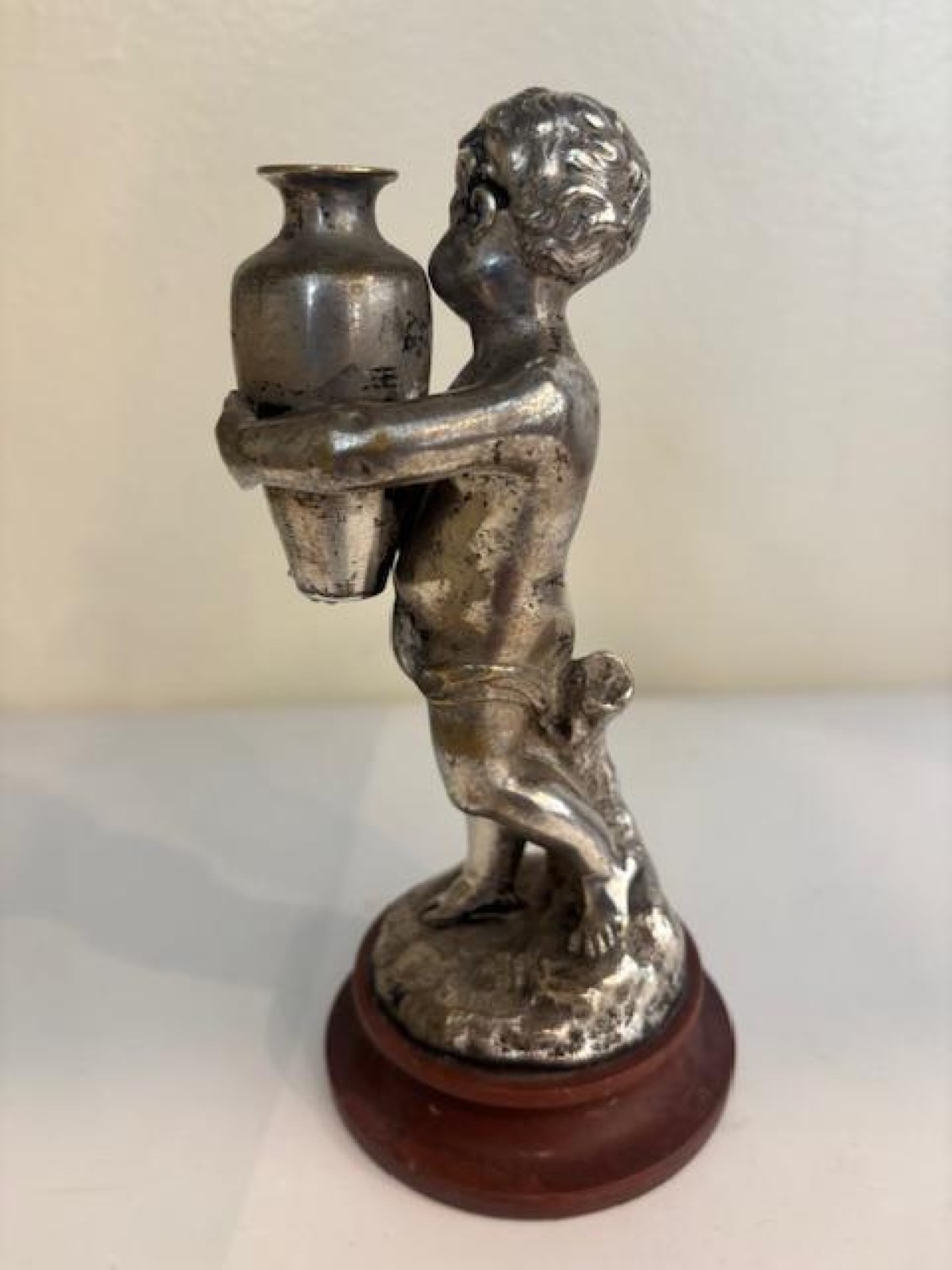 French Victorian small sllver-plate bronze cupid hold urn