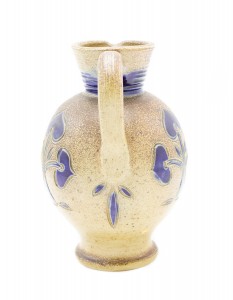 German (19th Century) stoneware pitcher with handle and incised navy floral decorations with a coat of arms impressed on front (Signed on base)
