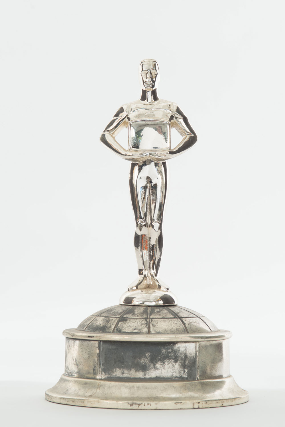 Gilded metal trophy with a man figure holding a television/computer screen (3 - PRICED EACH)