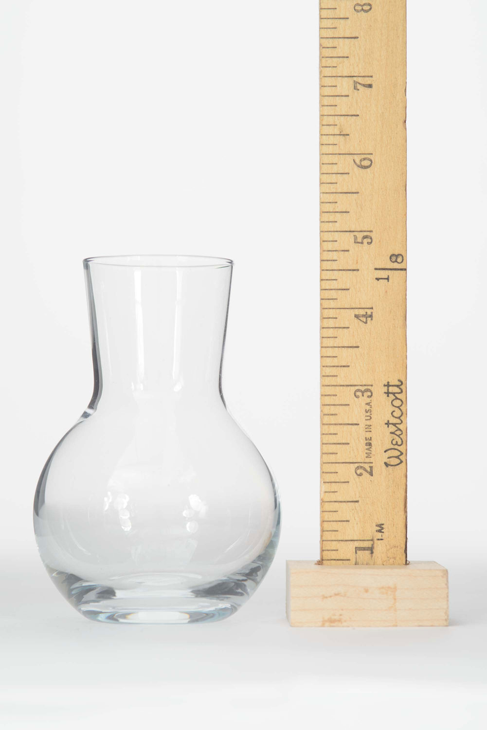 Bulbous-shaped glass bud vase with a wide, tapered neck
