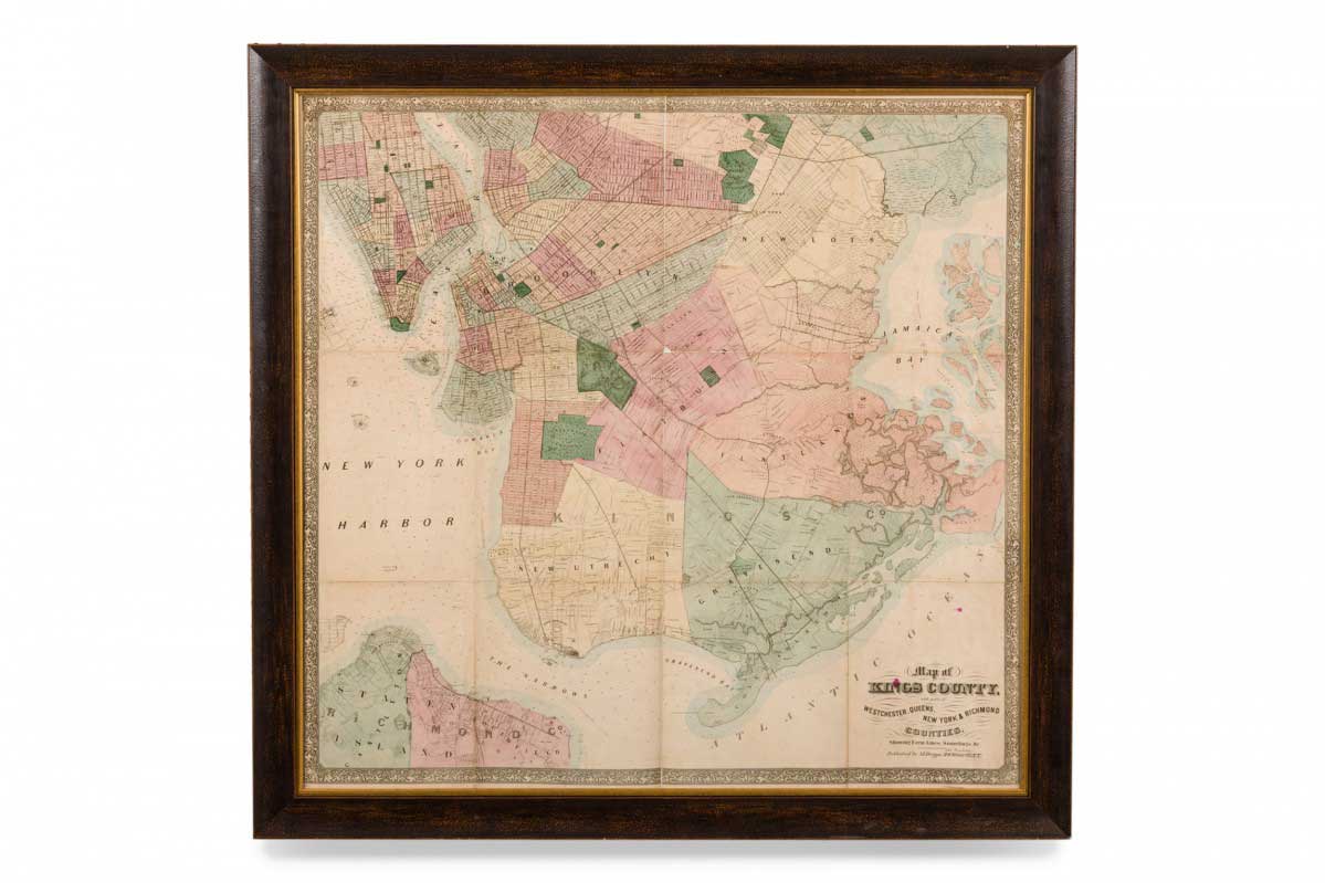 American Country (20th Century) Brass framed green leather bulletin board