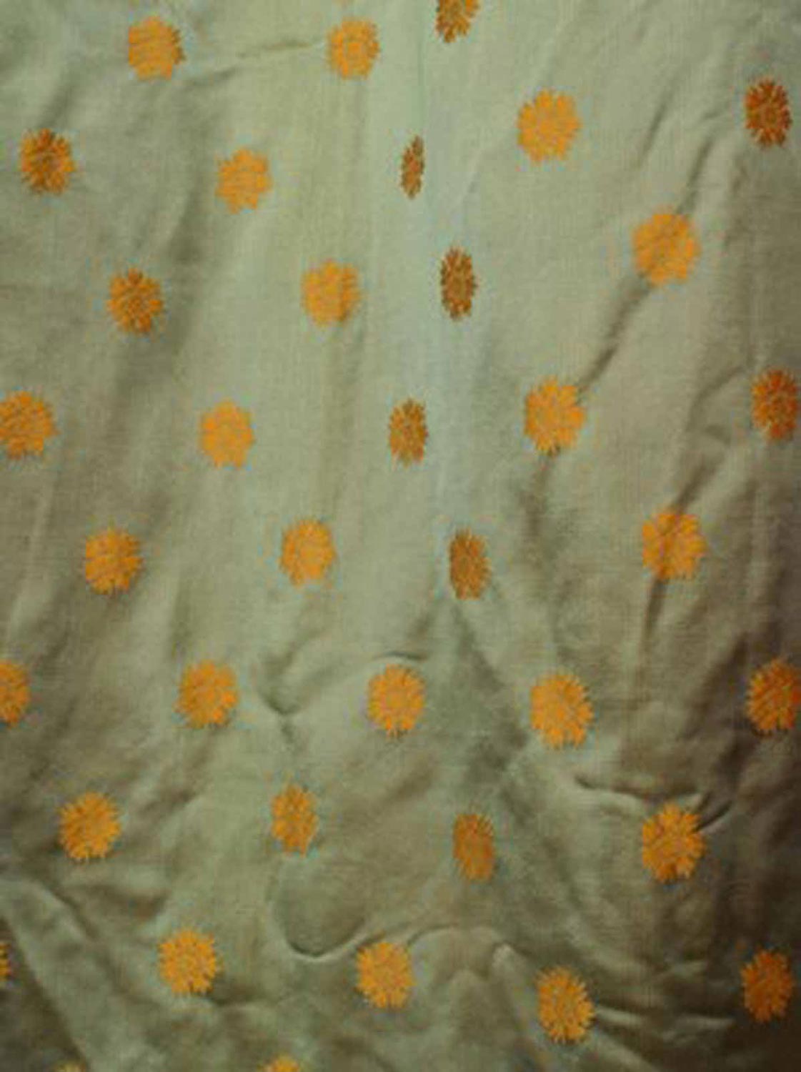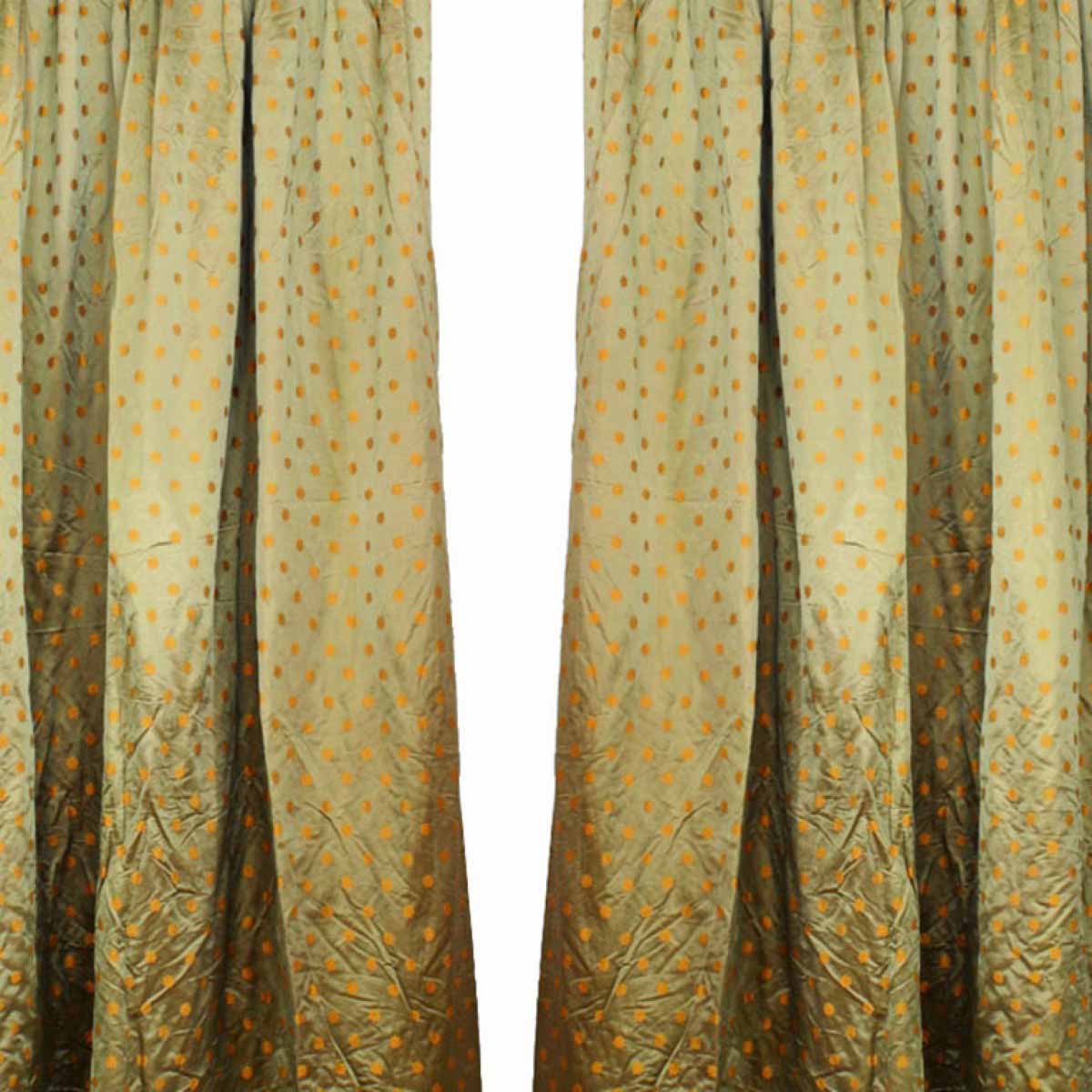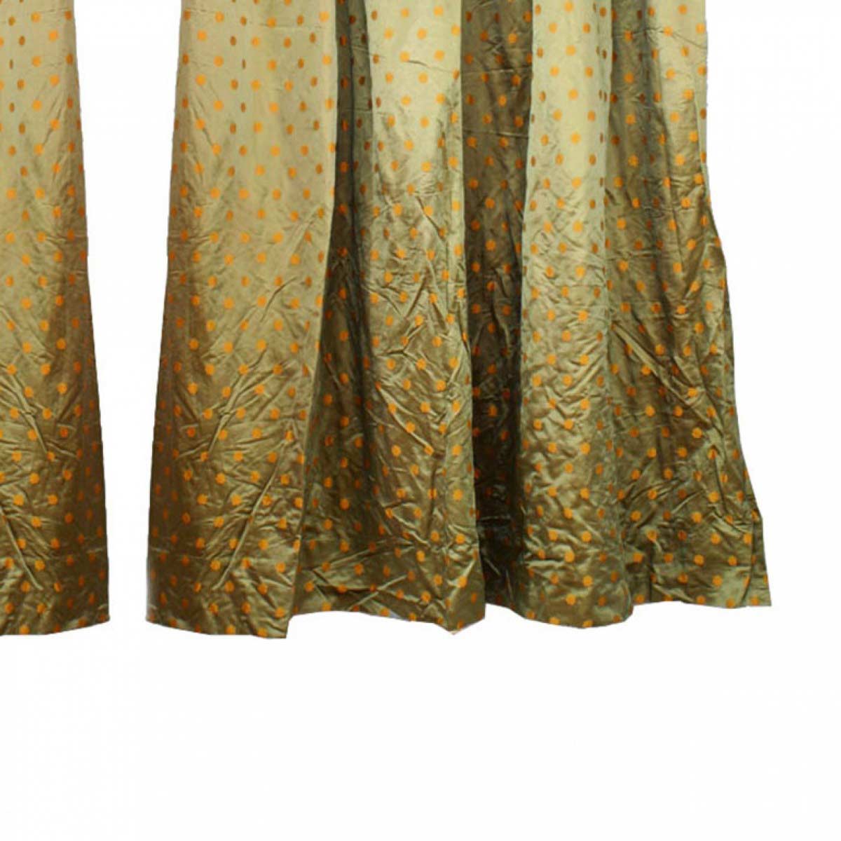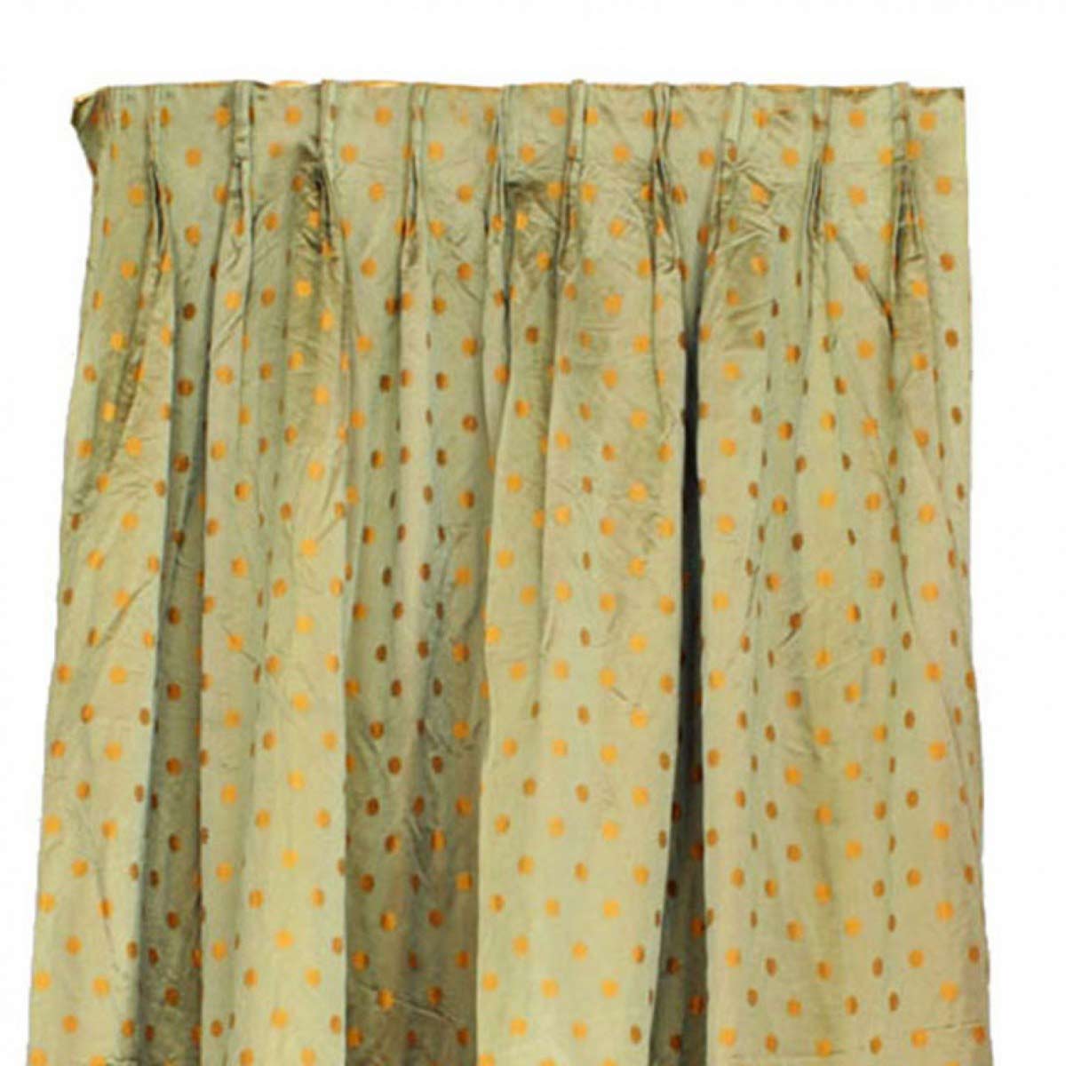 2 green silk drapes with repeating gold flower head pattern (PRICED EACH).