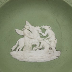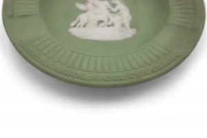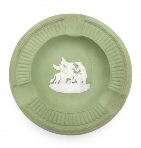 English Victorian-style (20th Century) green Wedgwood porcelain round ashtray with medallion in center
