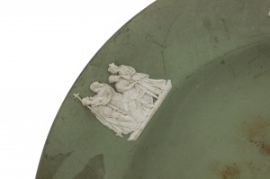 English Victorian-style (20th Century) green Wedgwood porcelain round ashtray with 6 medallions on edge