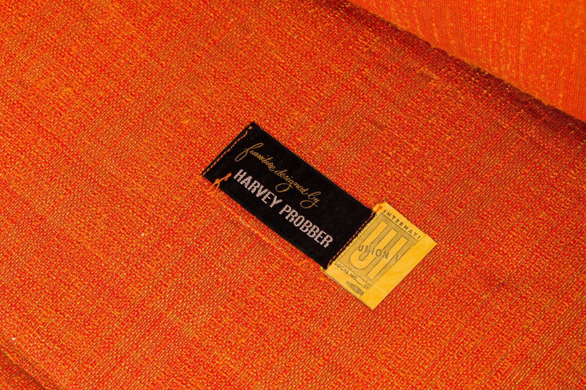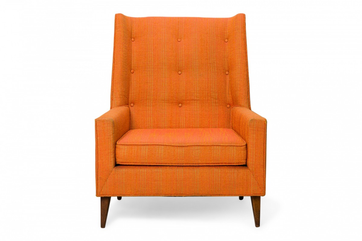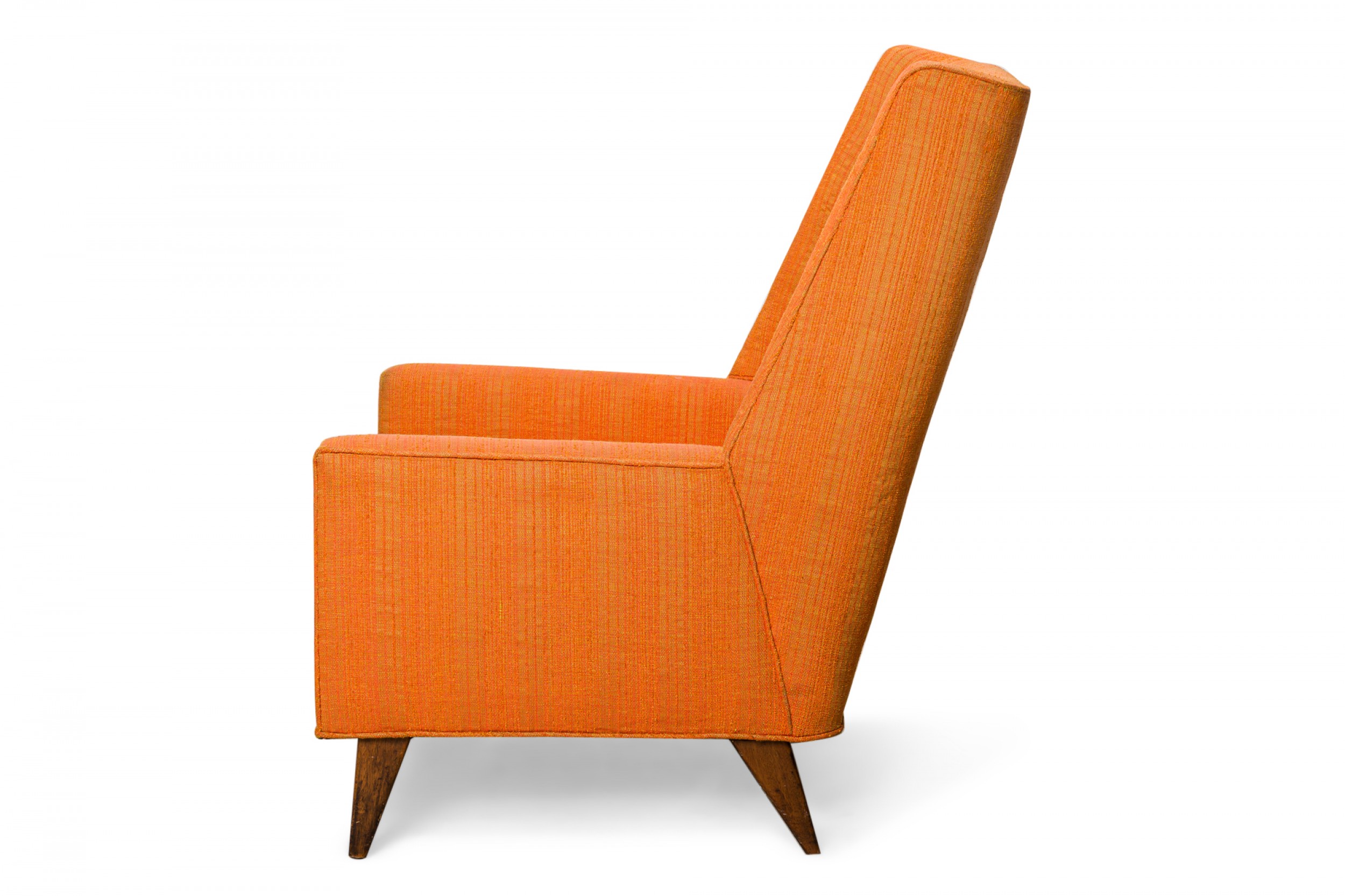 American Mid-Century Tall Back Orange Fabric Upholstered Arm / Lounge Chair