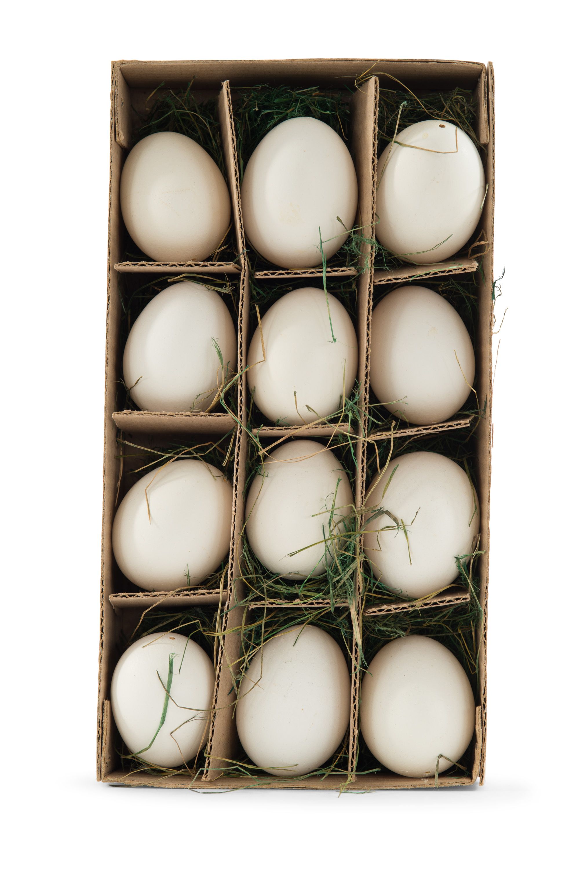3 dozen empty real chicken eggs in a cardboard case with artificial grass (3 SETS - PRICED PER DOZEN)