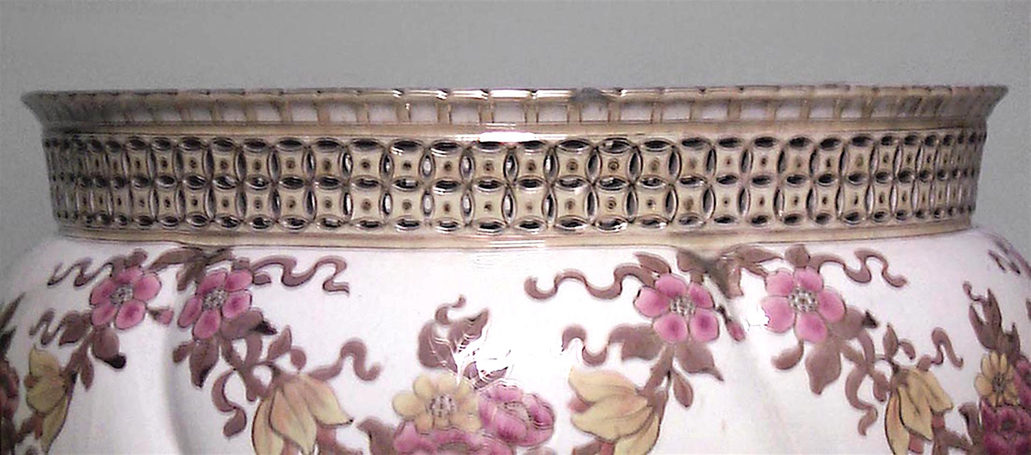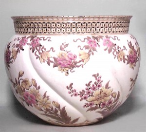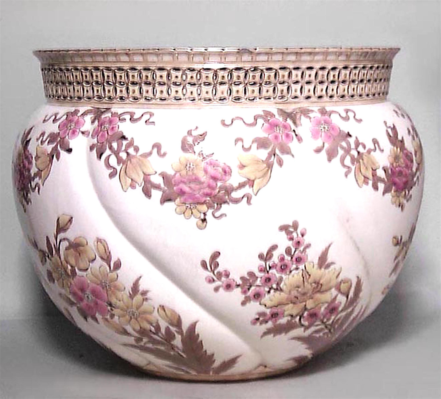 Continental (Hungarian) Victorian large lusterware jardiniere with floral festoon decoration & pierced rim