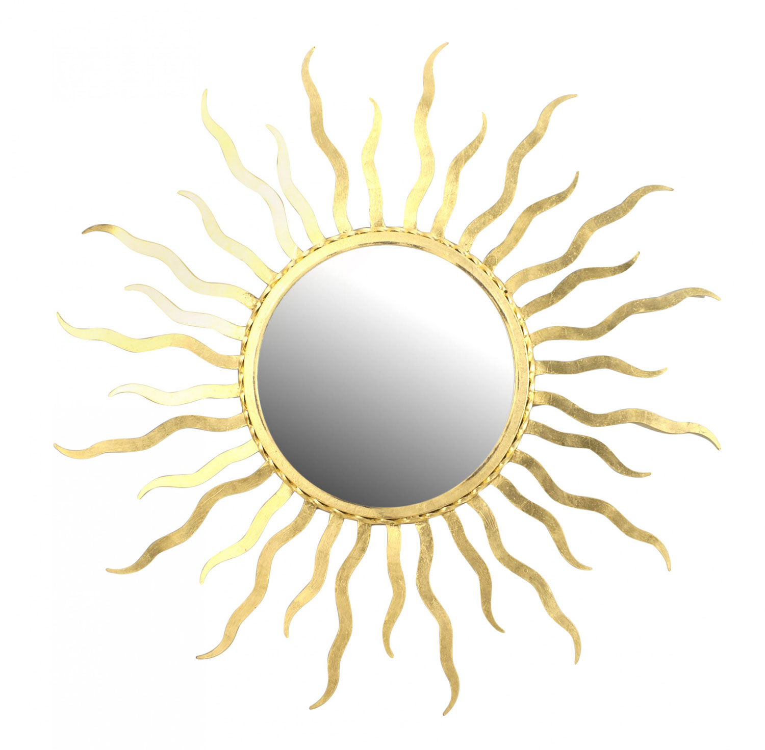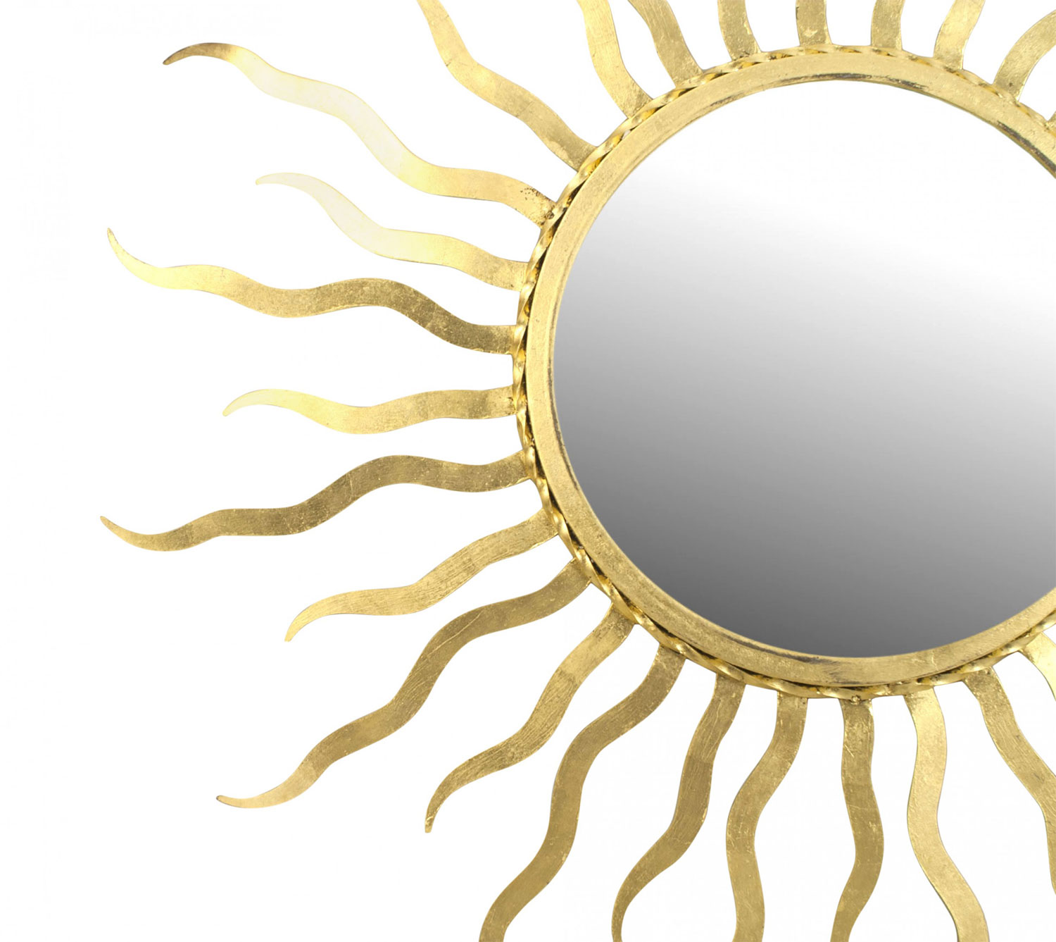 2 Italian Art Moderne-style (21st Century) gilt metal wall mirrors with a sunburst frame and rope design around the mirror. (PRICED EACH)