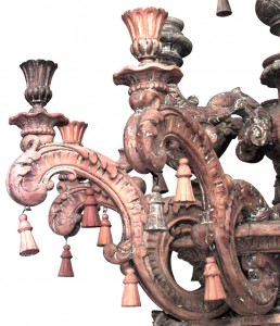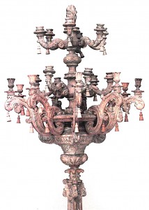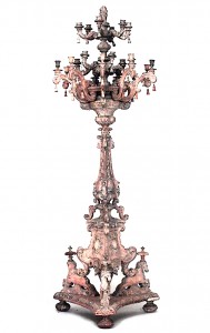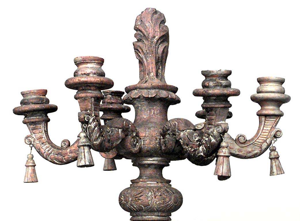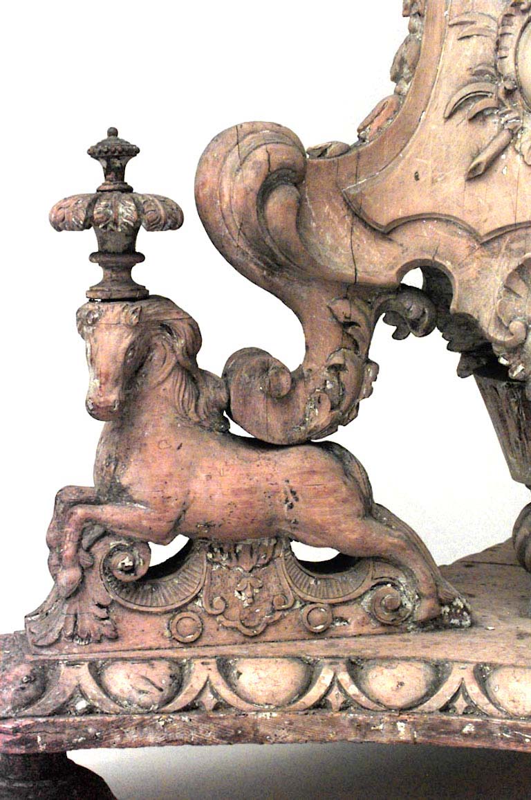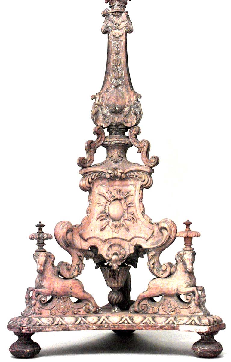 2 Italian Baroque-style (19th Century) stripped pine, beech & poplar 24 arm floor torchiere with 3 scrolling legs on horses (in the style of PIRANESI) (PRICED EACH)