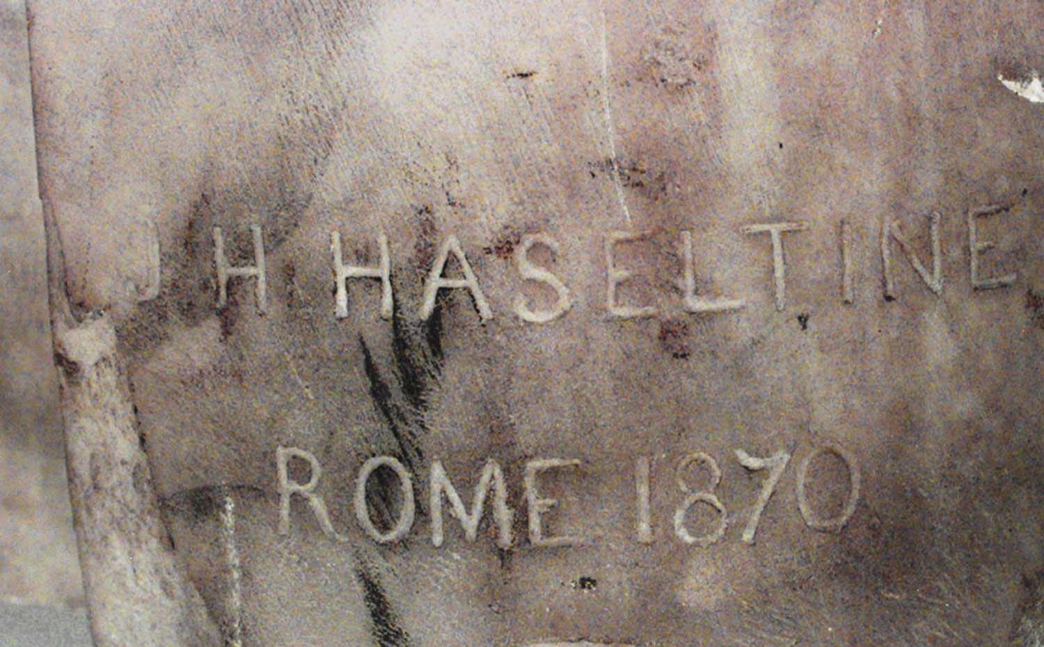 Italian white marble bust of young Roman man (sgnd: J.H. Haseltine, 1870, Rome)(AS IS-damage to nose)