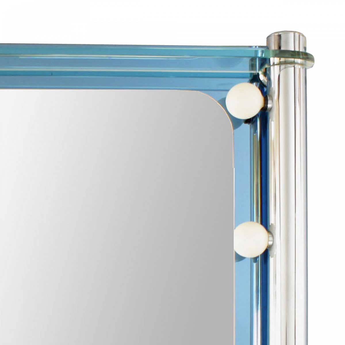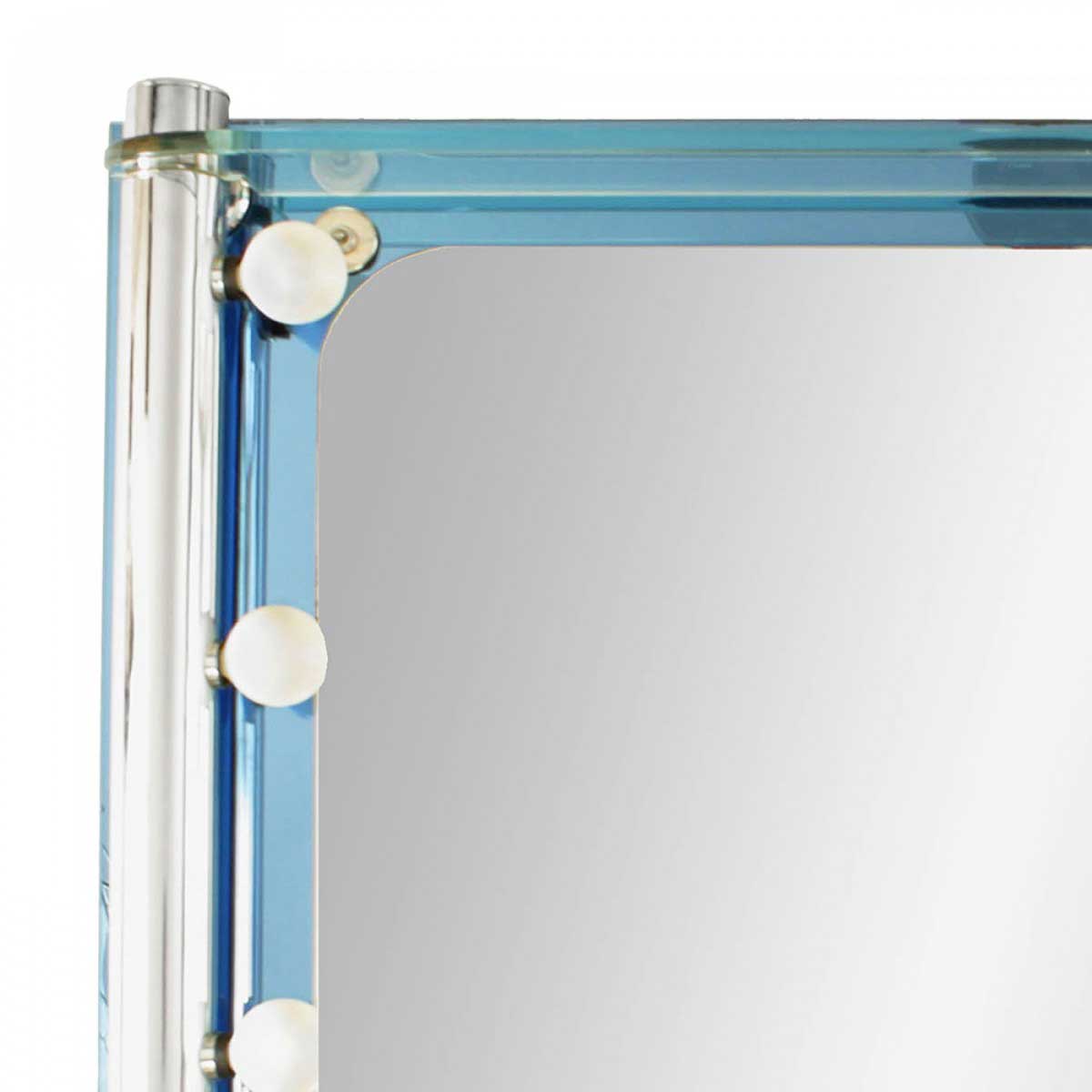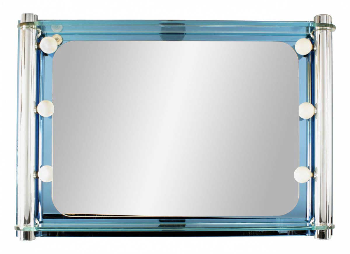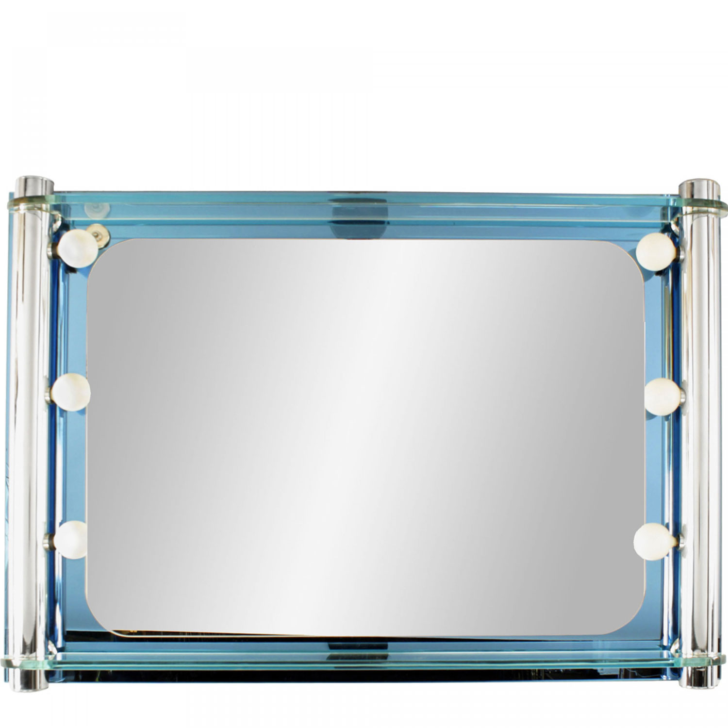 Italian Mid-Century Lighted Blue Glass Wall Mirror
