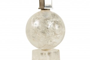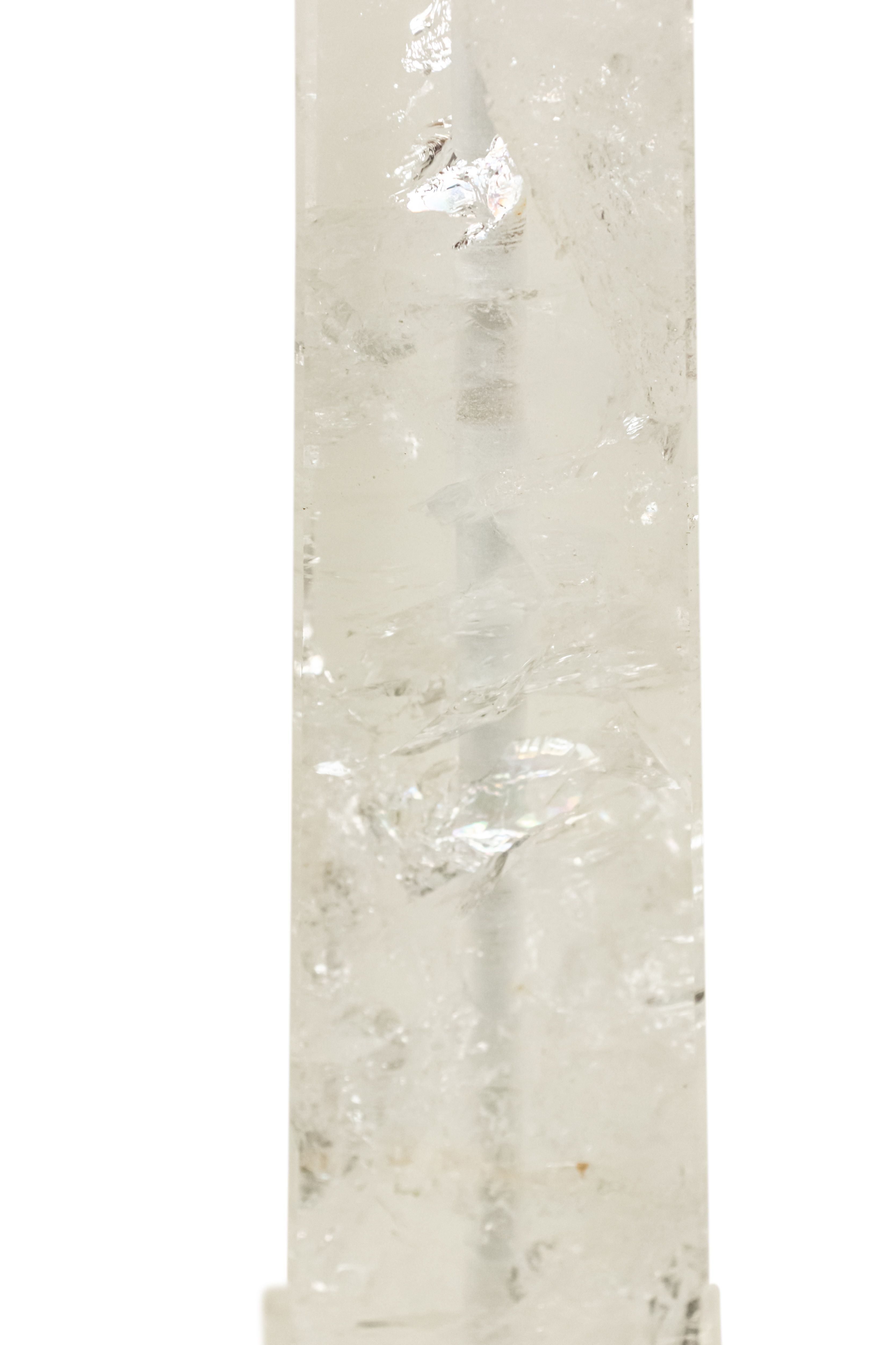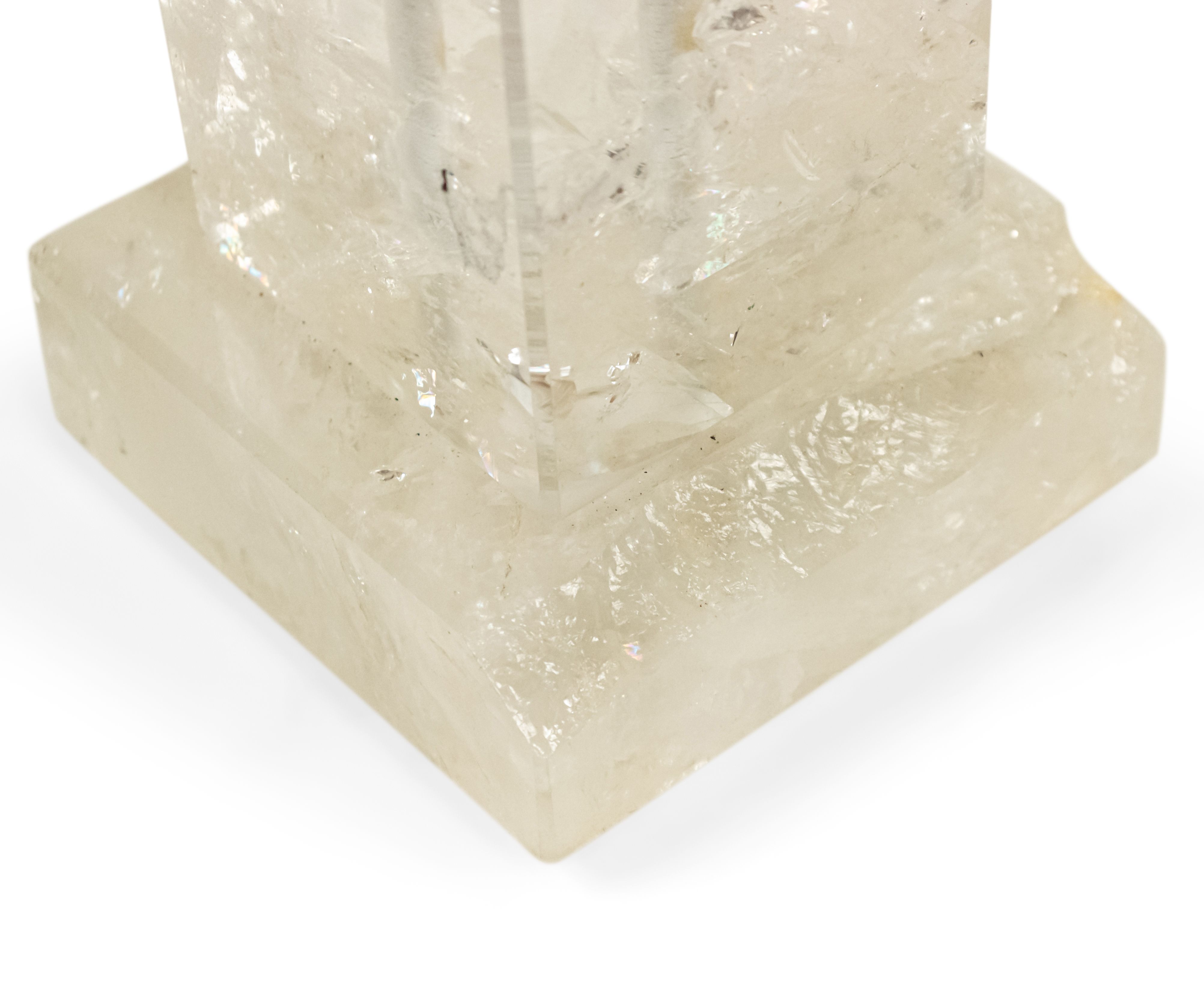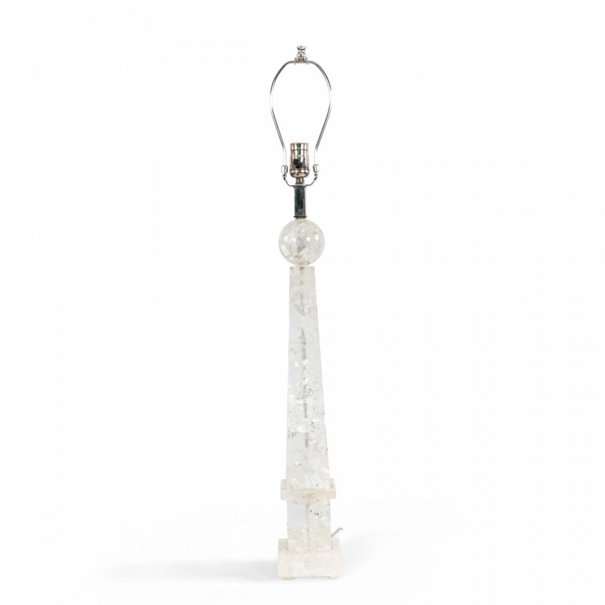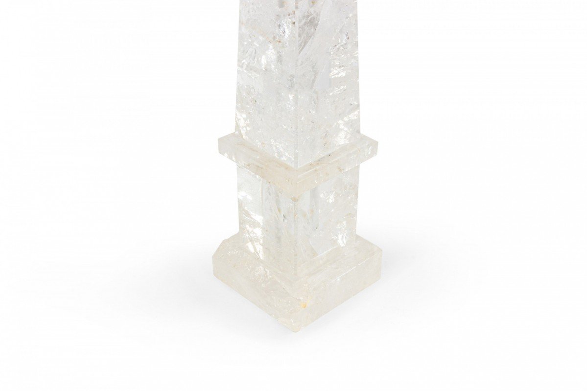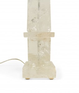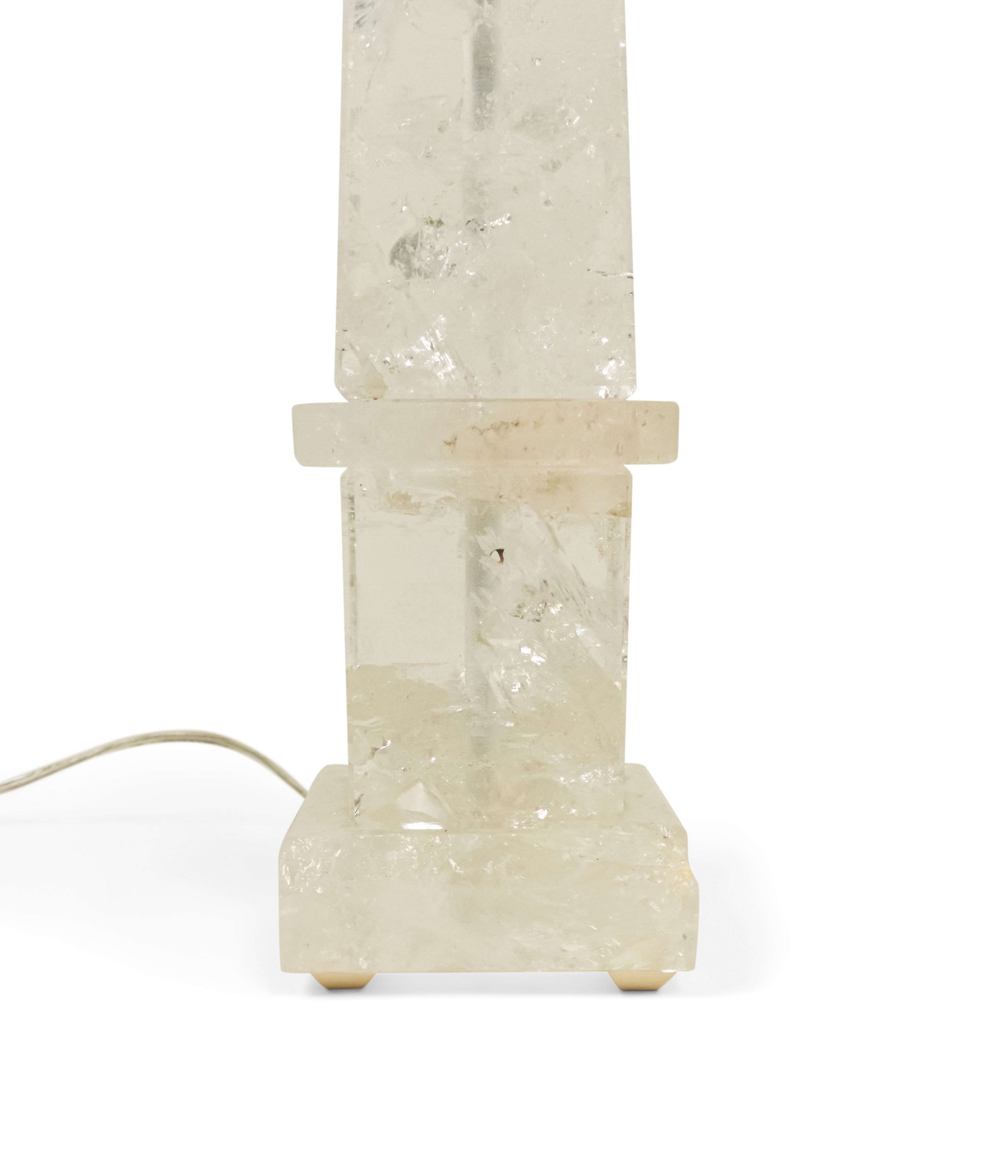 2 Italian 1940s style (modern) rock crystal table lamps in the form of an obelisk supporting a sphere (PRICED EACH)