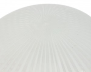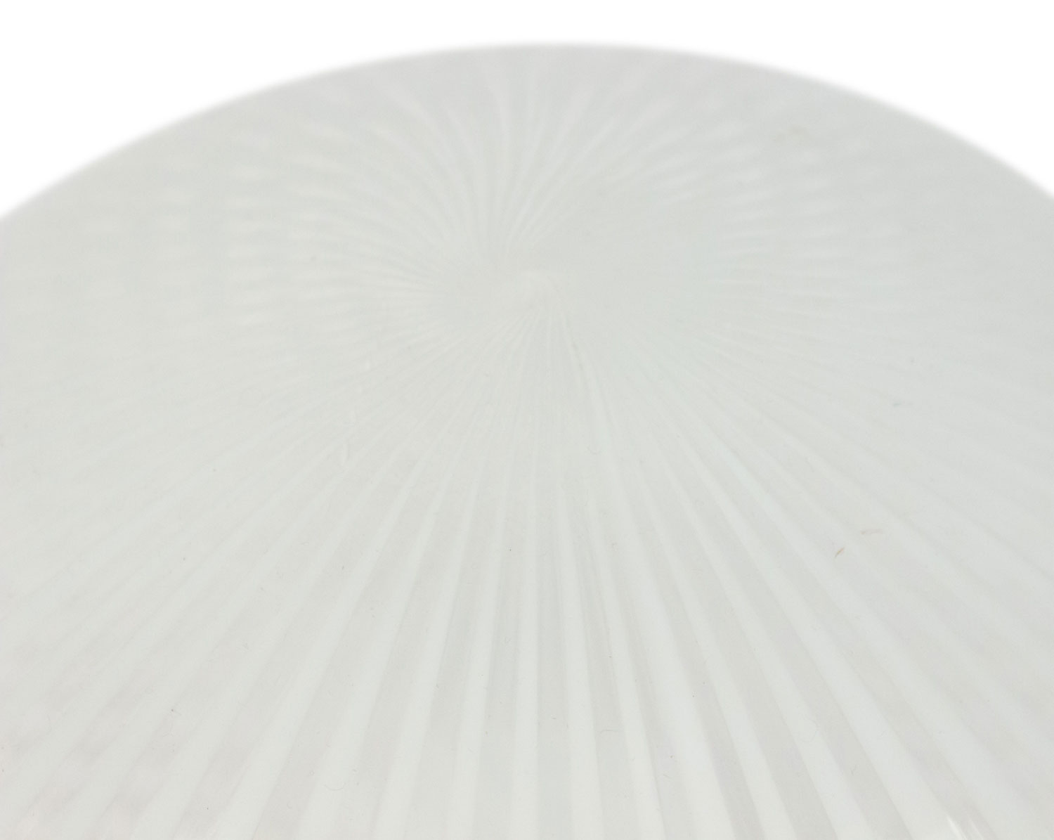 Italian Post-War Design 1970s Venetian Murano clear glass shade table lamp with white stripe design mounted on a ebonized base. Original Murano label