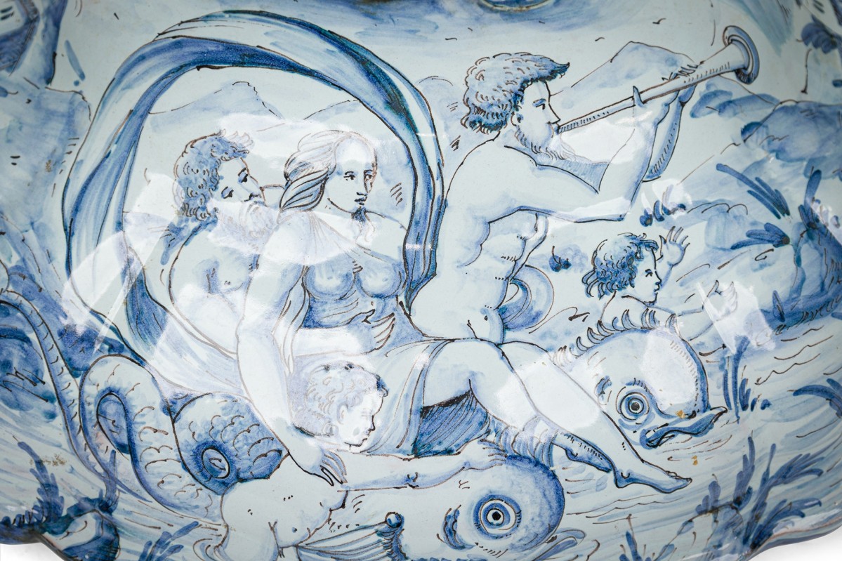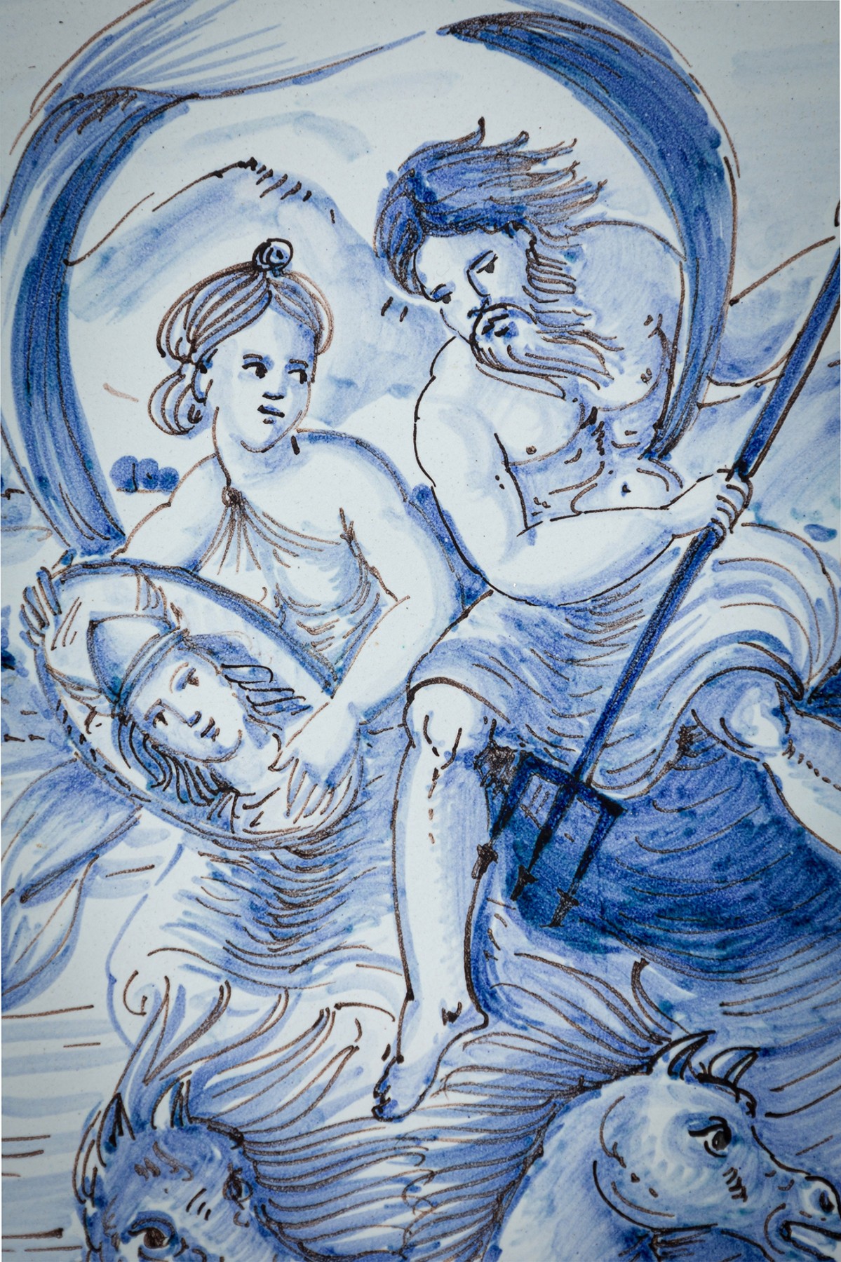 Italian (early 20th Century) Neo-Classical Style Hand Painted Venus and Neptune Albisola Majolica Lidded Serving Tray