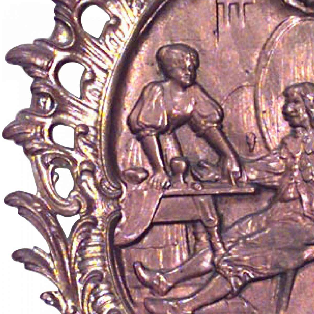 2 Italian Neoclassic-style (19/20th Century) bronze and dore wall sconces with two arms, filigree edges, and oval relief center panels (PRICED EACH)