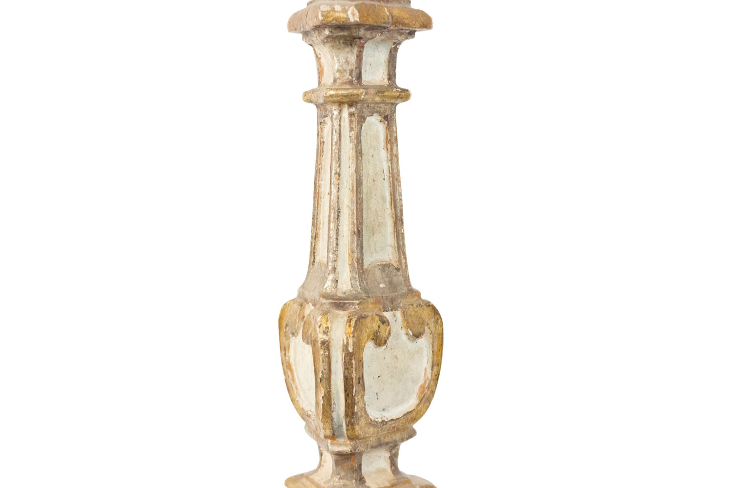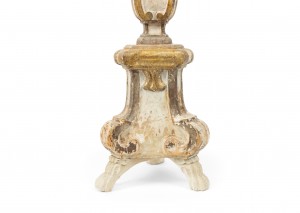 PAIR of Italian Neo-classic (17/18th Century) white painted candlesticks with gilt & silver gilt trim and raised on 3 later white painted claw feet (PRICED AS PAIR).