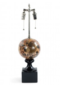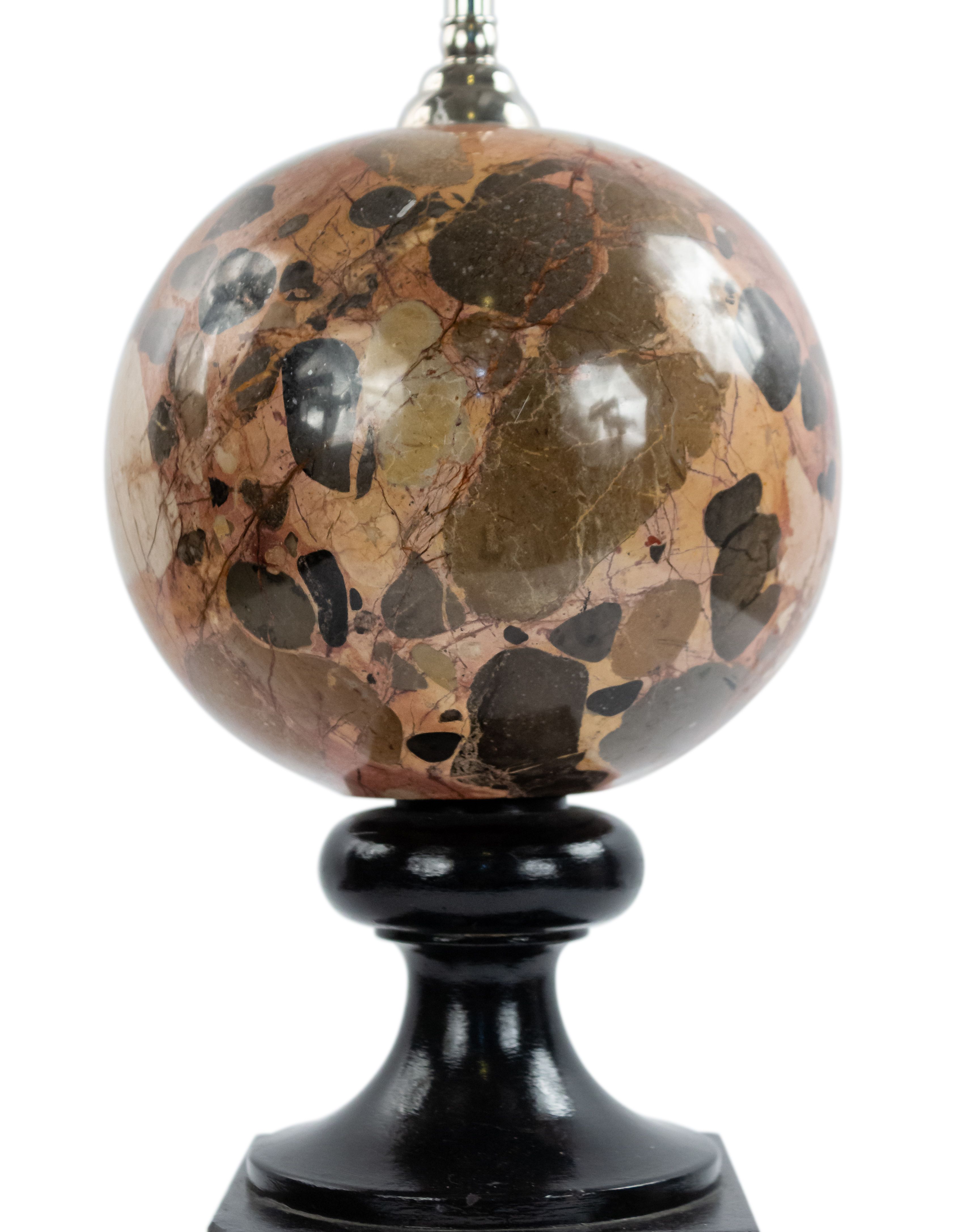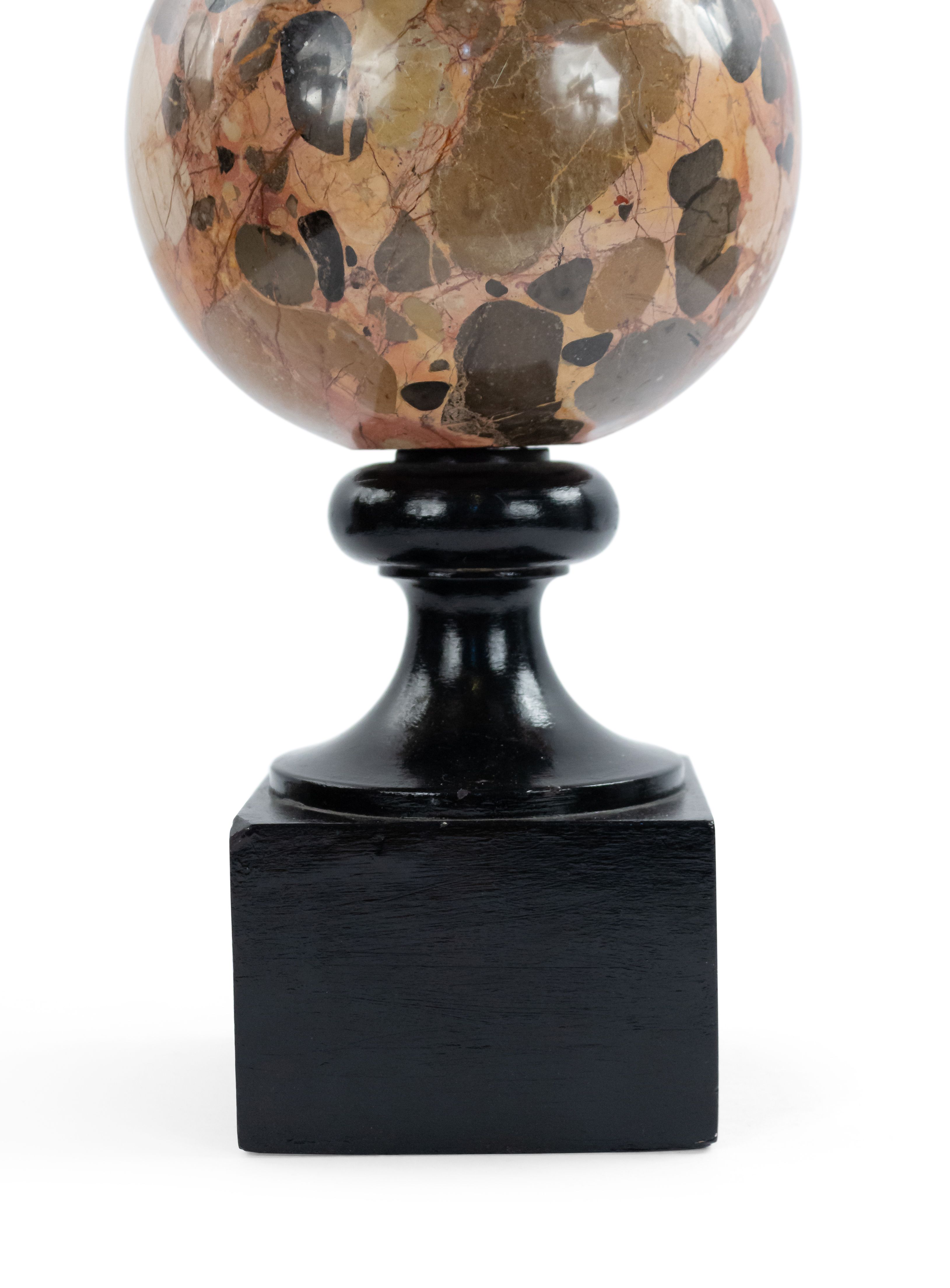 2 Italian Post-War Design table lamps with a round breche marble sphere supported on an ebonized square base (PRICED EACH)