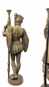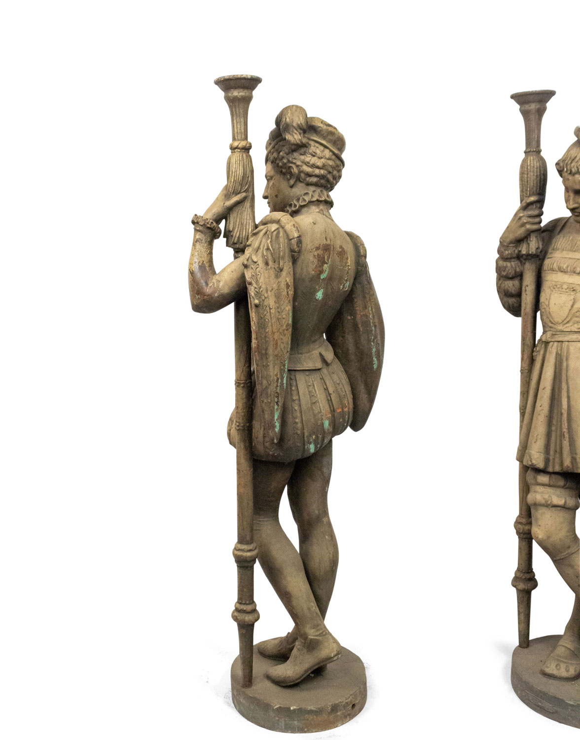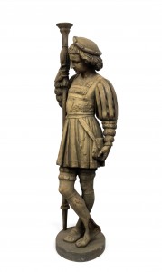2 Italian Renaissance style (19/20th Cent) iron life size page figures holding torch. (Priced Each).