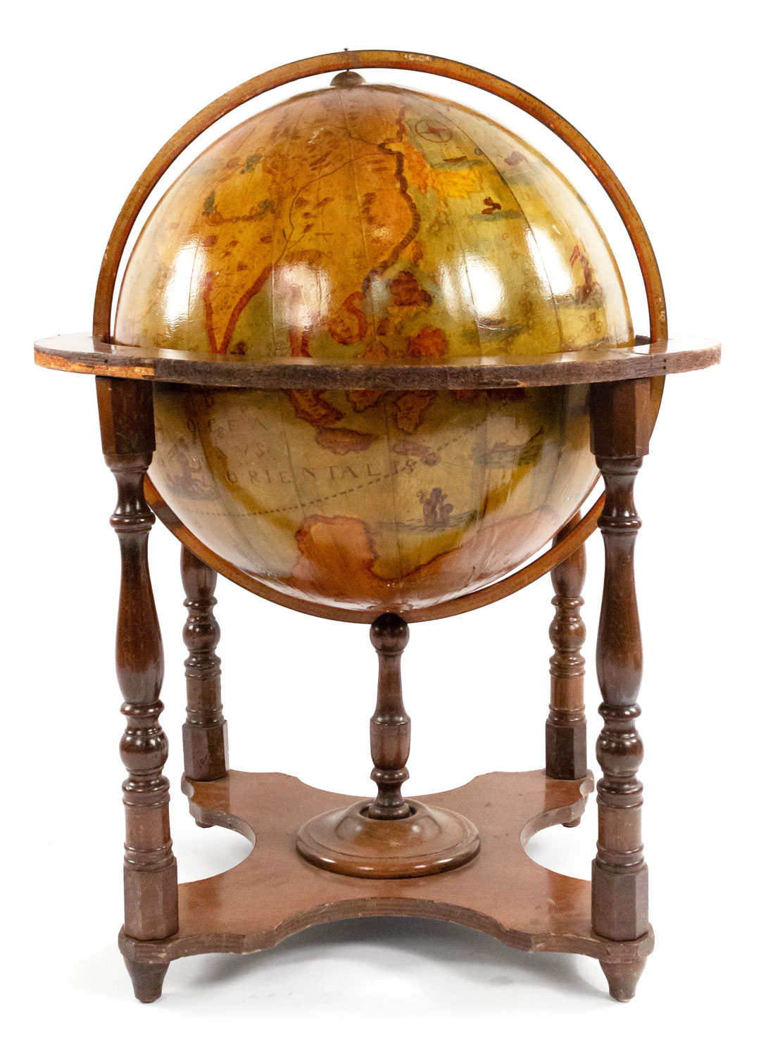 Italian Renaissance-style (20th Century) large globe of world on 4 turned legs