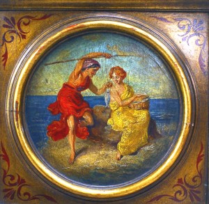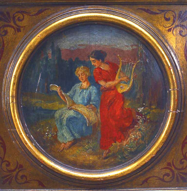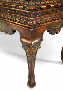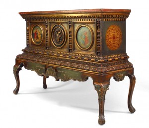 Italian Renaissance style (late 19th Century) polychromed and parcel gilt chest on a stand with round painted panels and faux marble top.