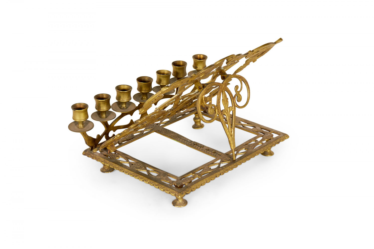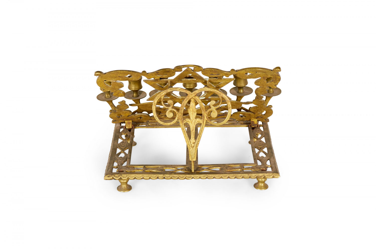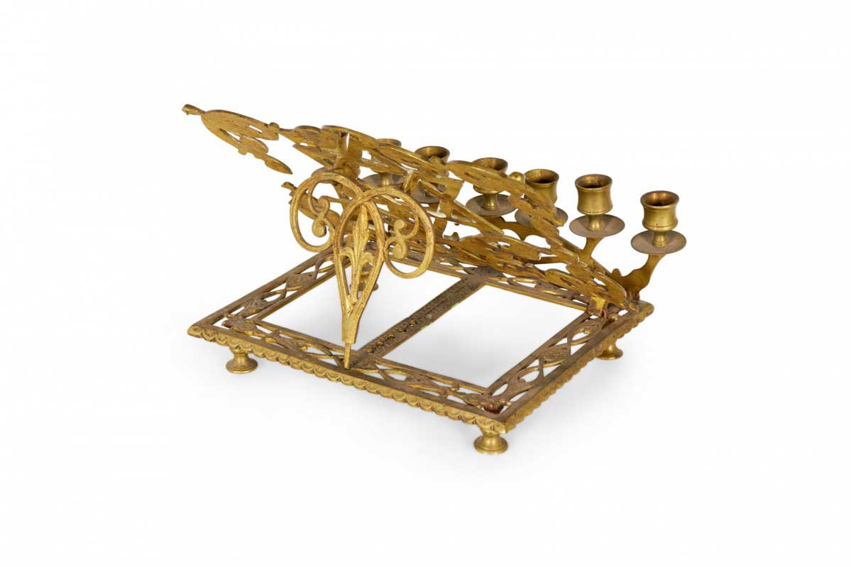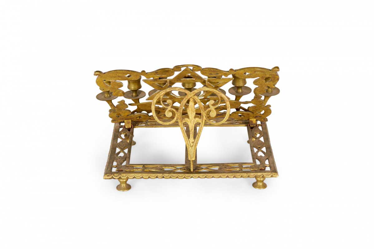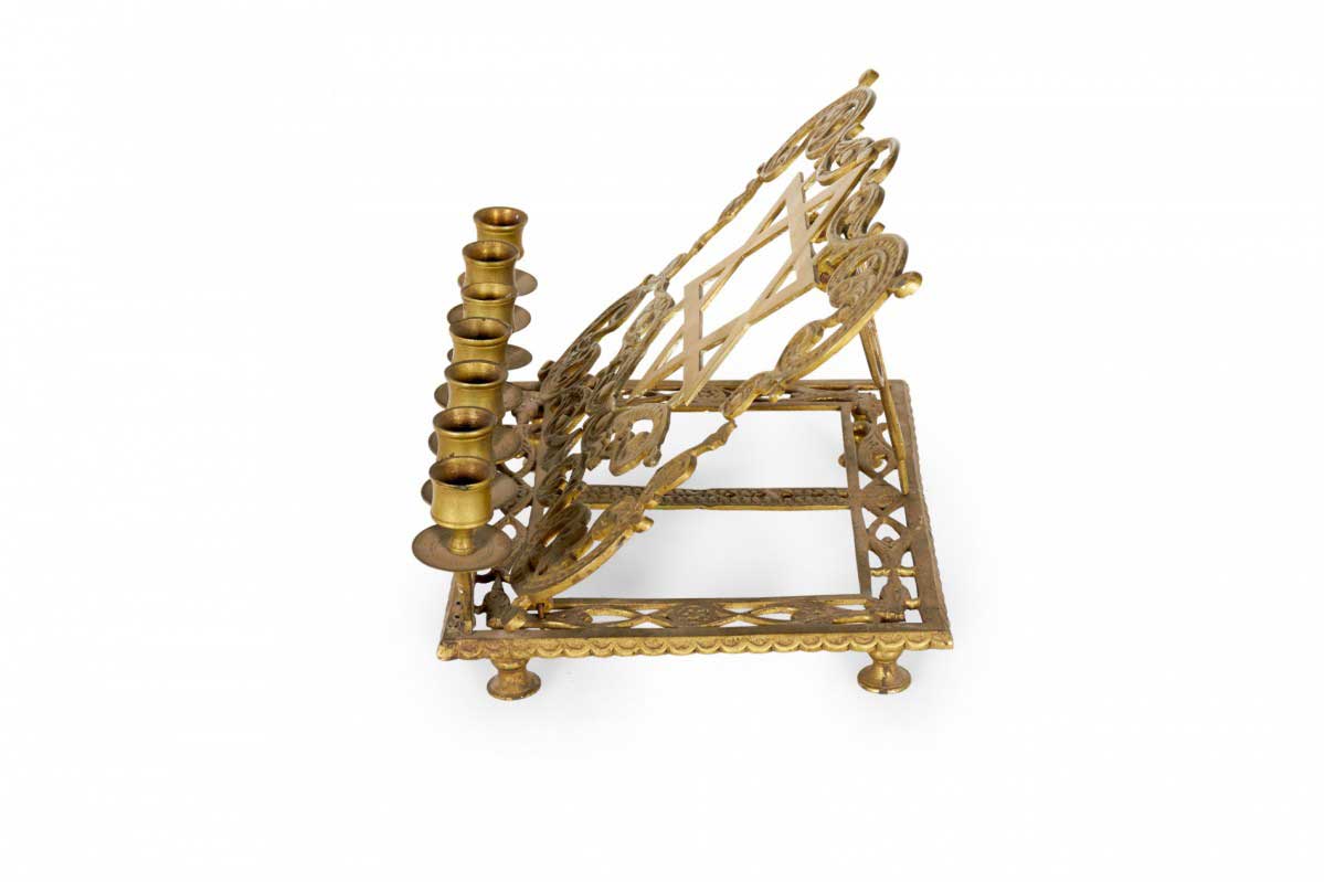 Italian Renaissance style rass filigree religious book stand with Star of David and 7 candleholders (19th Cent.)