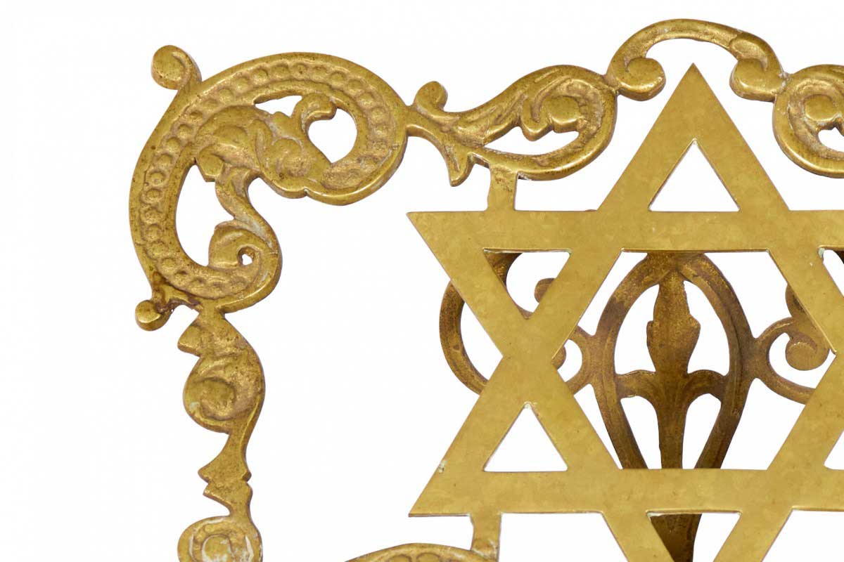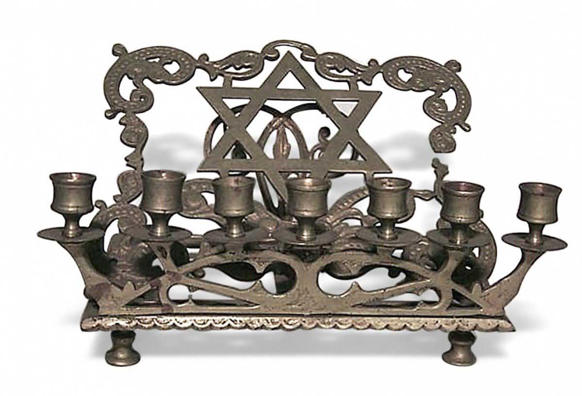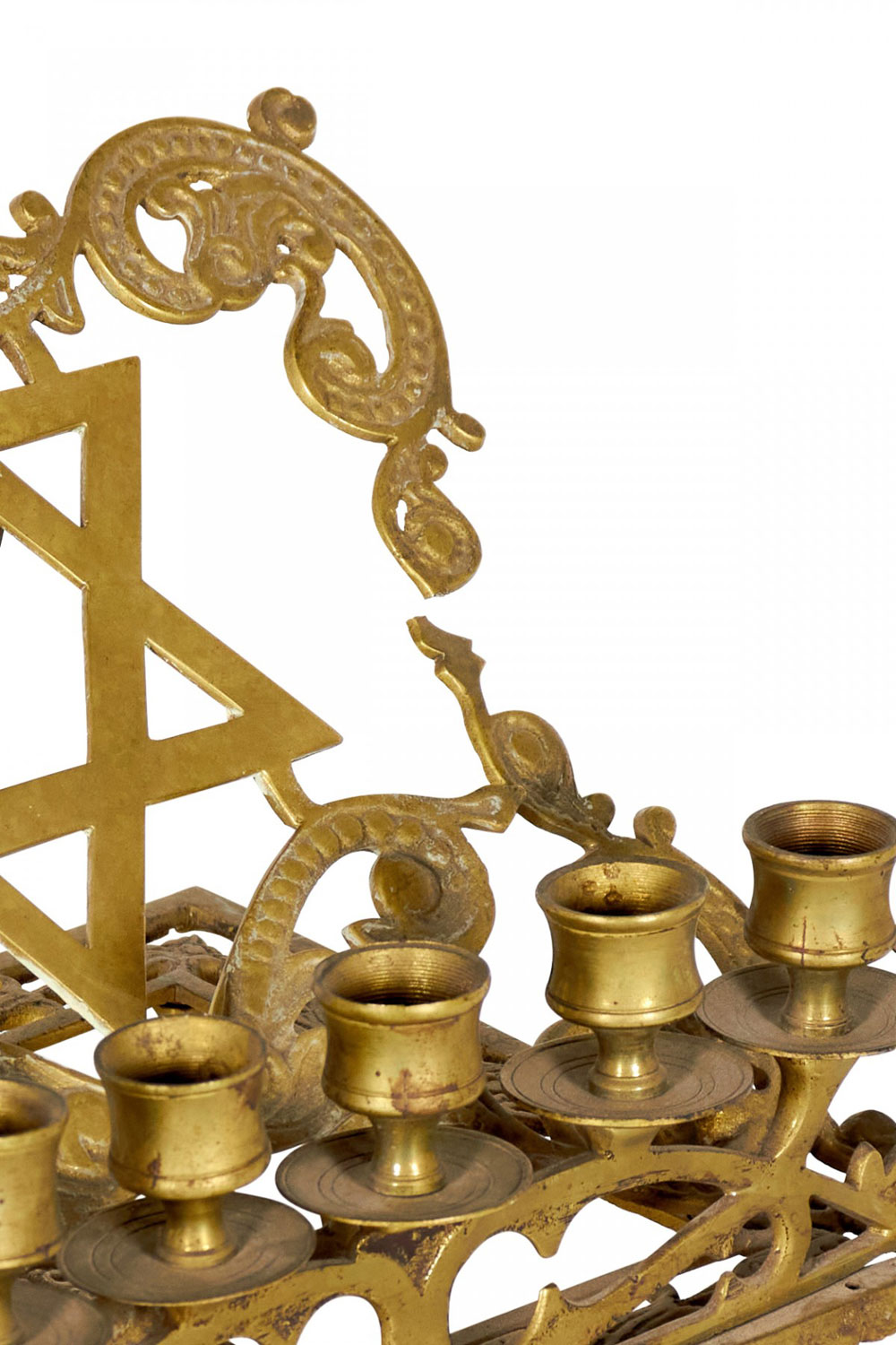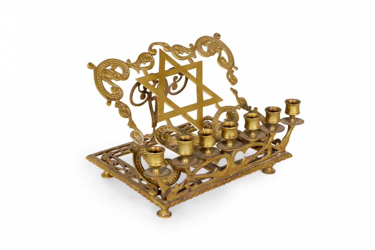 Italian Renaissance style rass filigree religious book stand with Star of David and 7 candleholders (19th Cent.)