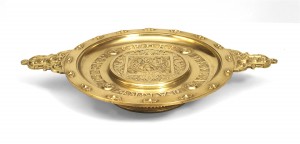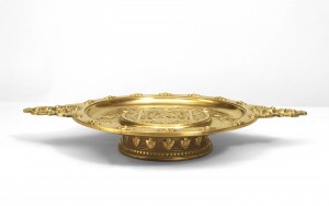 Italian Renaissance-style (19th Century) bronze footed centerpiece tazza with 2 handles and incised decoration.
