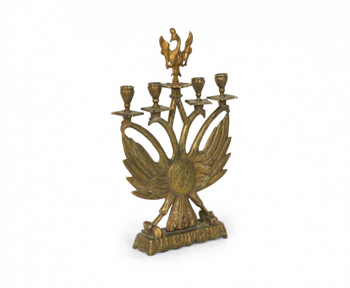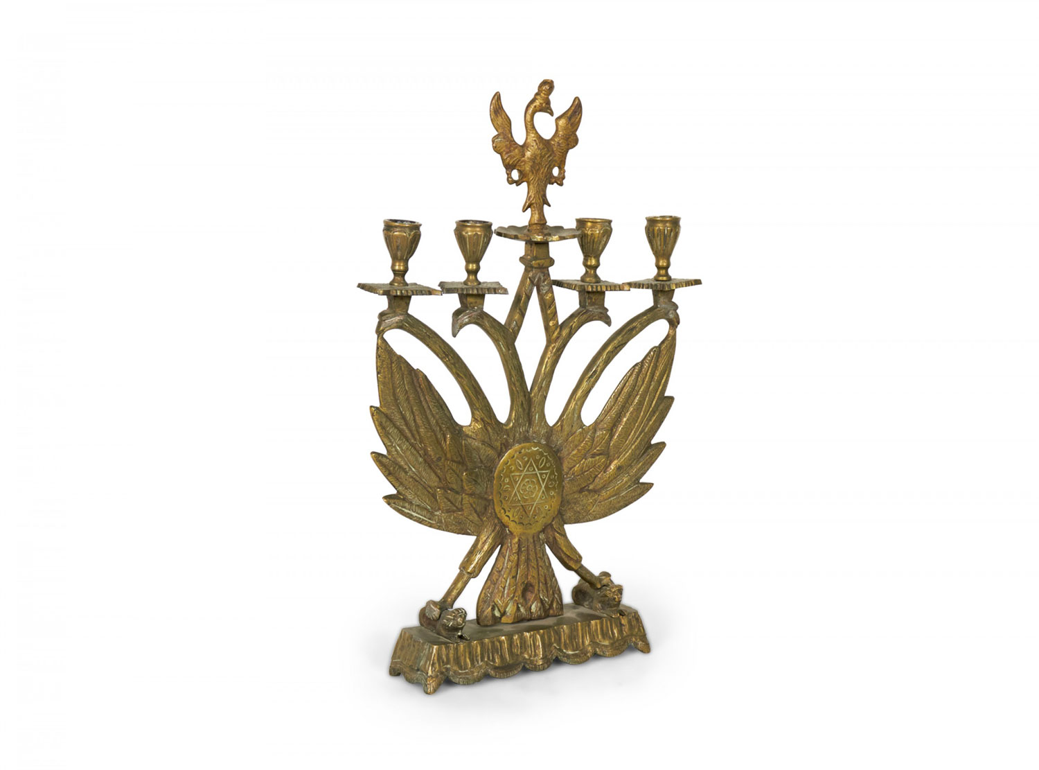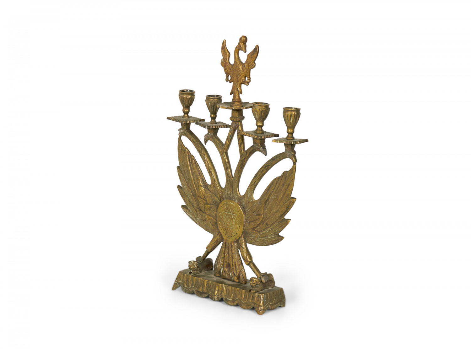 PAIR of Italian Renaissance-style (19th Century) Judaica eagle head design brass candelabras with bird finials (PRICED AS PAIR)