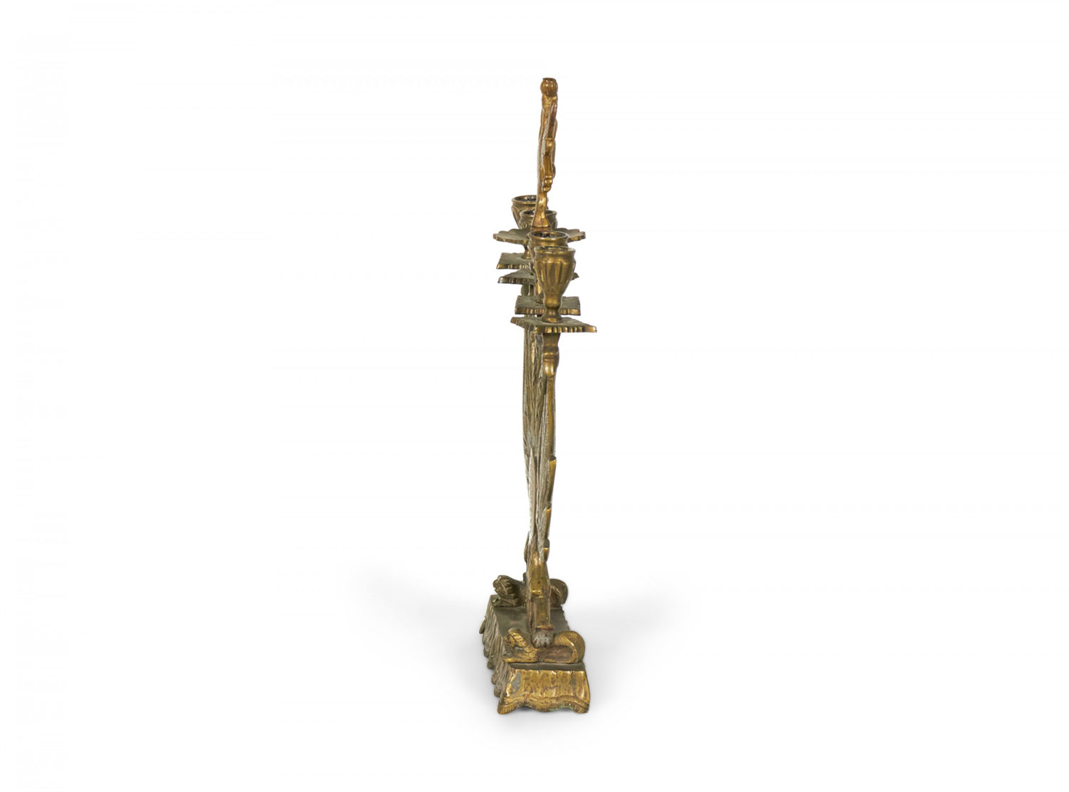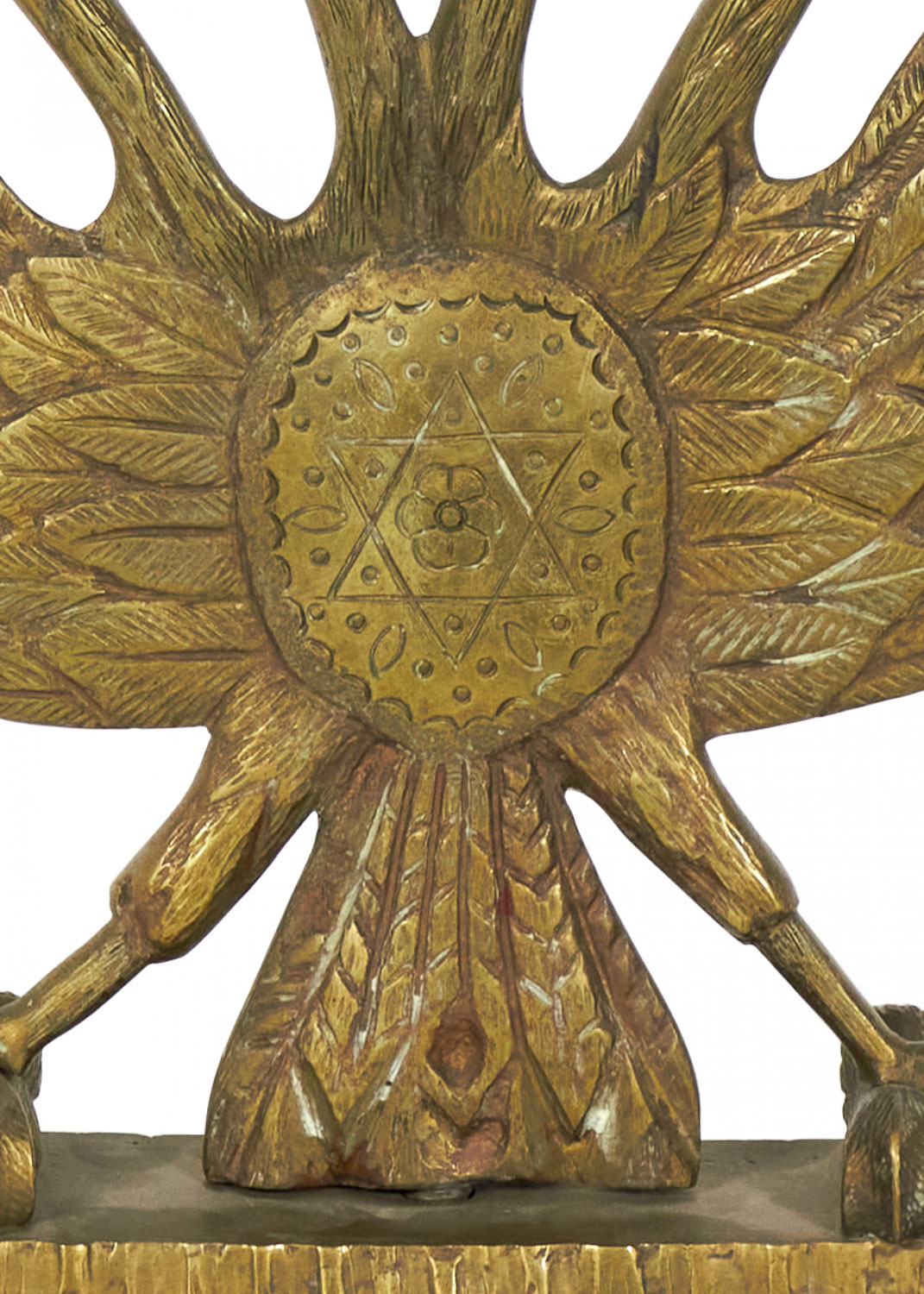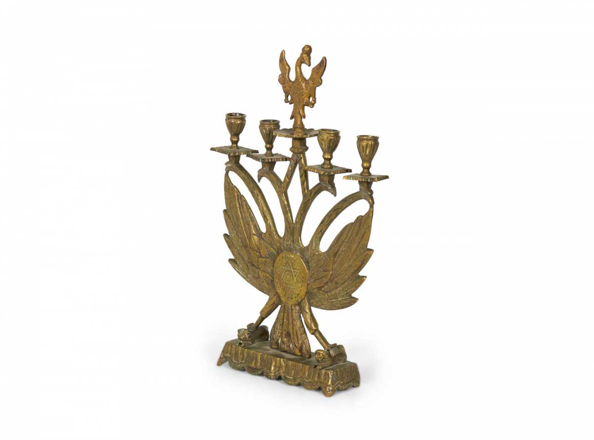PAIR of Italian Renaissance-style (19th Century) Judaica eagle head design brass candelabras with bird finials (PRICED AS PAIR)