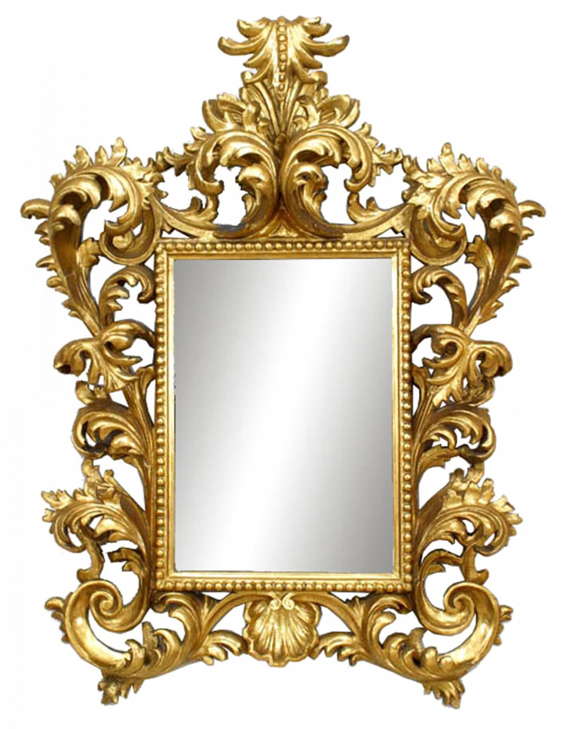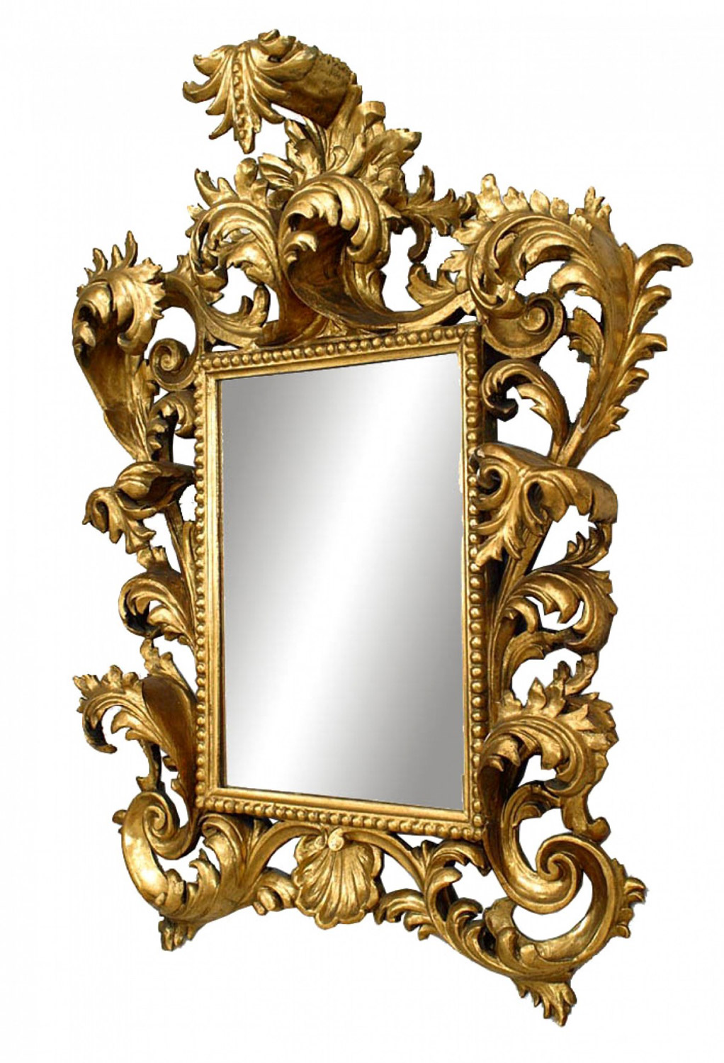 2 Italian Rococo-style (possible Florence, 19th Century) giltwood wall mirrors with rectangular plates within a scrolling acanthus frame. (PRICED EACH)