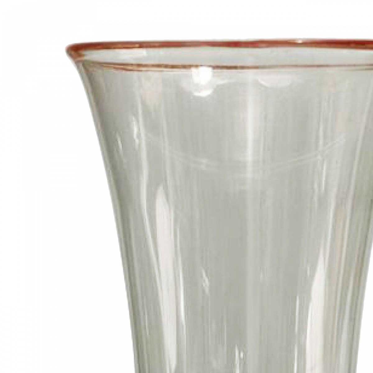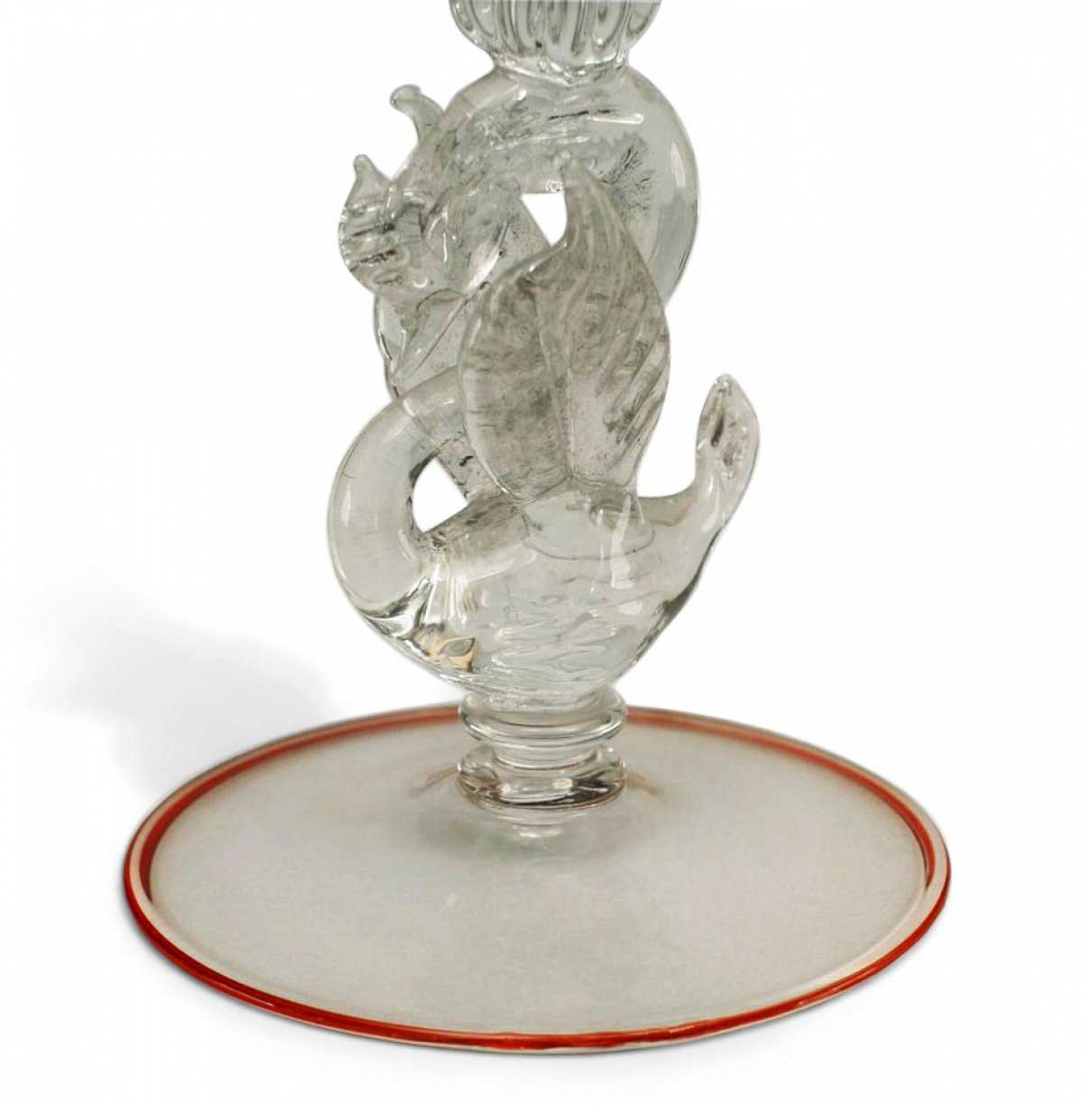 Italian (1890) Venetian Murano clear glass goblet supported with a swan base and trimmed with a red band on top and base.