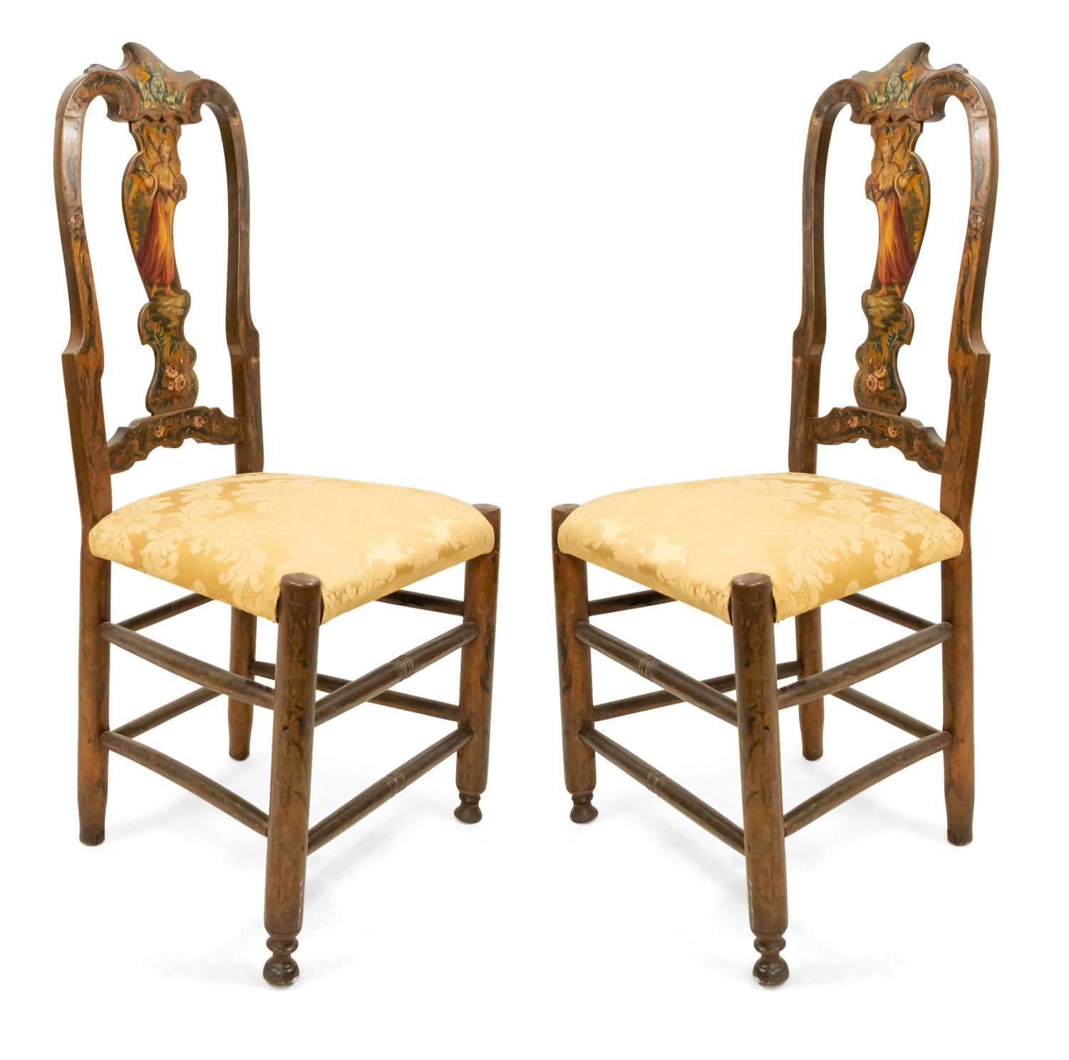 2 Italian Venetian style (18/19th Cent) painted splat back side chairs with stretcher and upholstered seat (PRICED EACH)