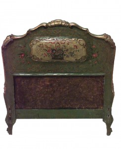 2 Italian Venetian-style (19th Century) green and gold painted single size bed (Includes: headboard, footboard, rails) (PRICED EACH)