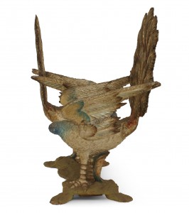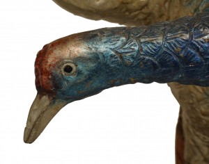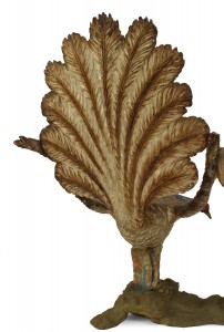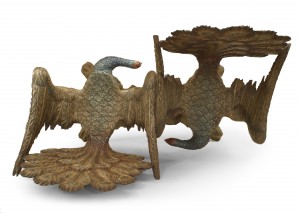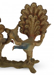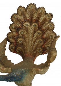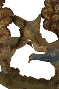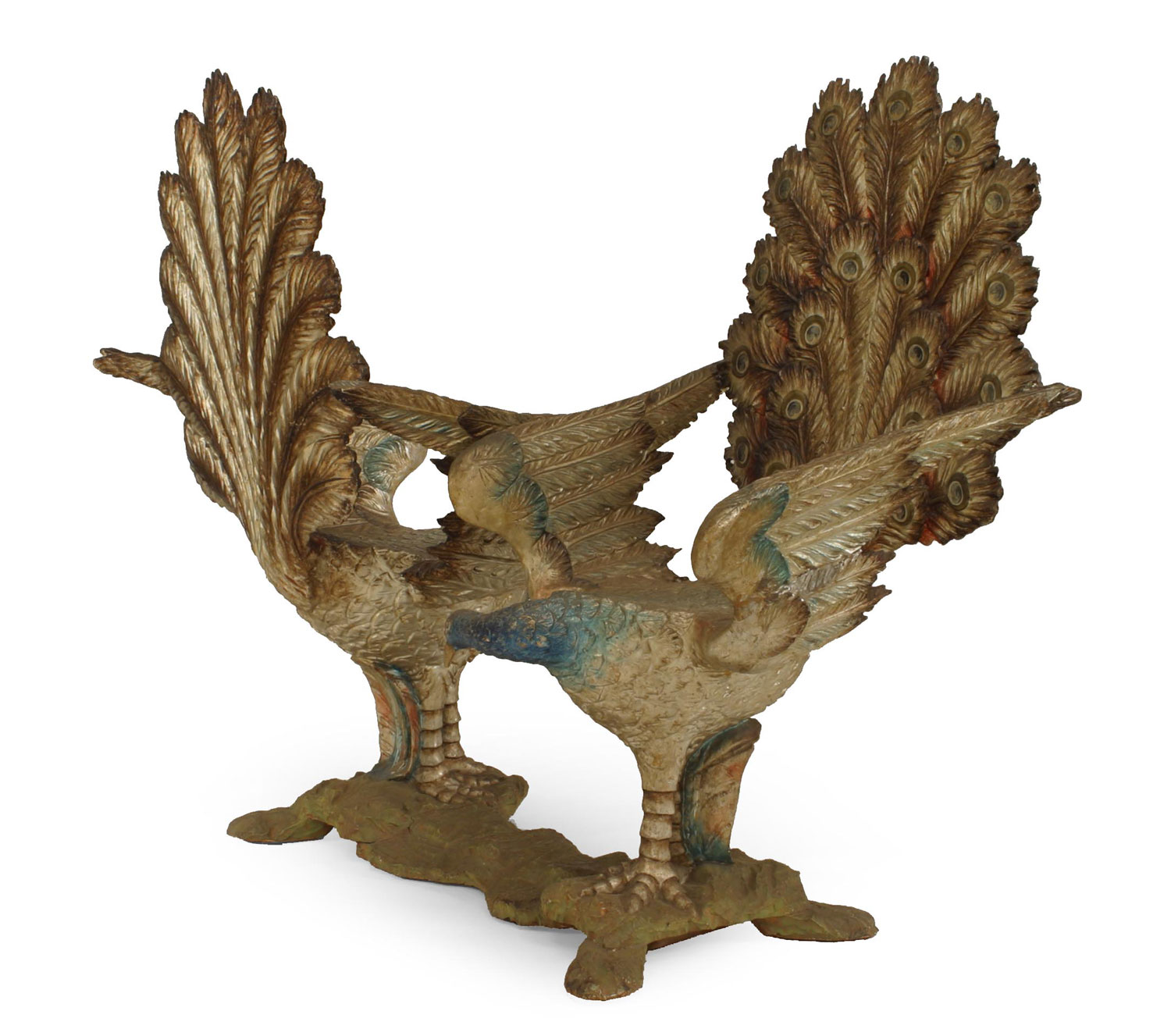 Italian Venetian style (19th cent.) Grotto carved and polychromed double peacock design conversation seat (tete-a-tete)