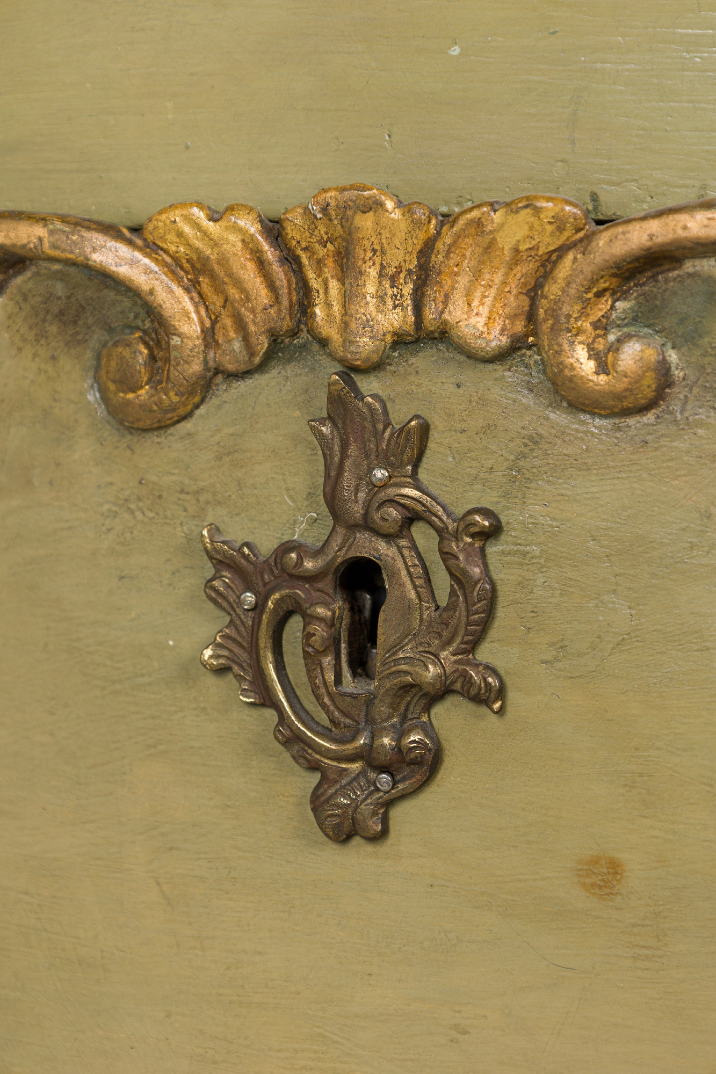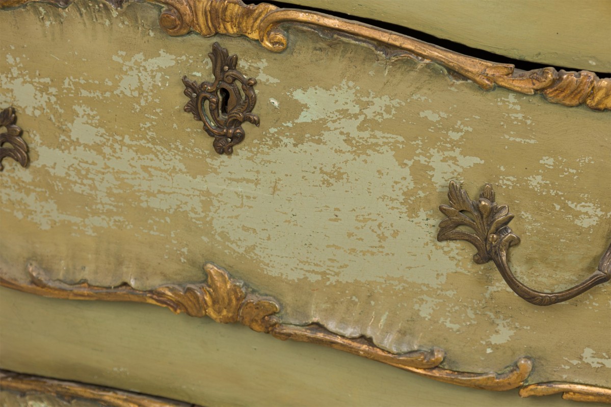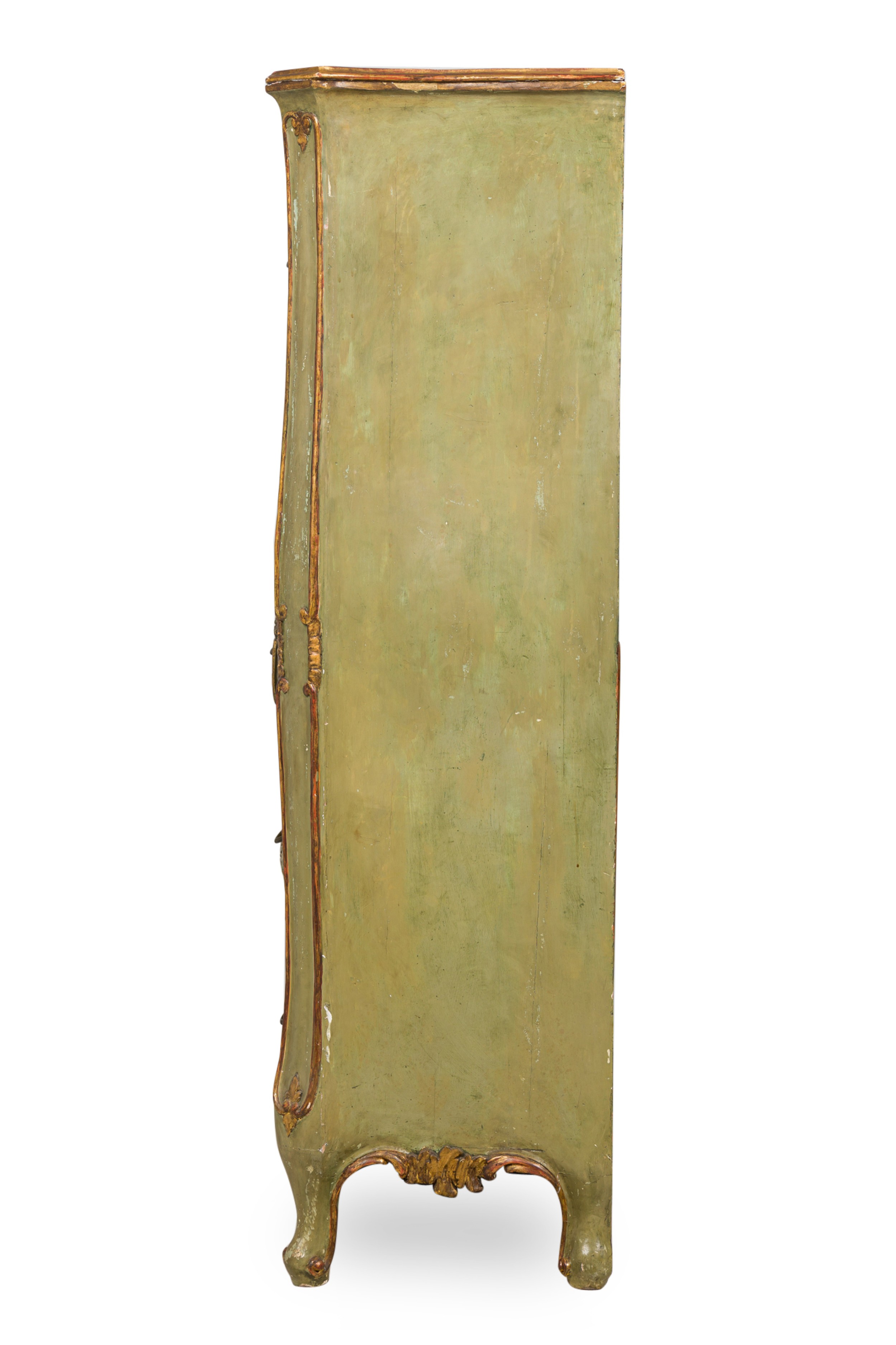 Italian Venetian / Rococo Style Green Painted and Parcel Gilt 5 Drawer Semainier / Dresser