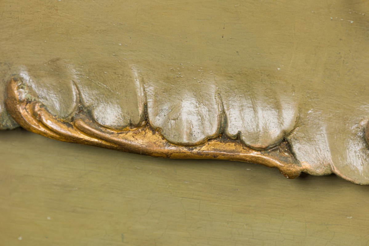 * Condition: Significant wear to finish, paint losses throughout. Missing marble top.