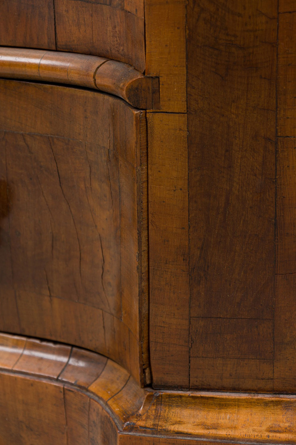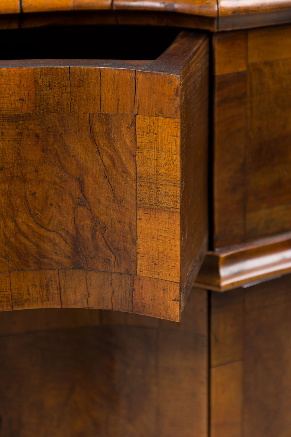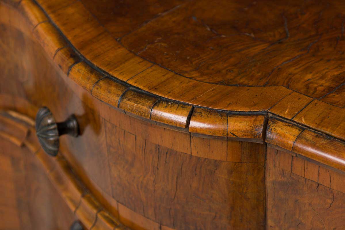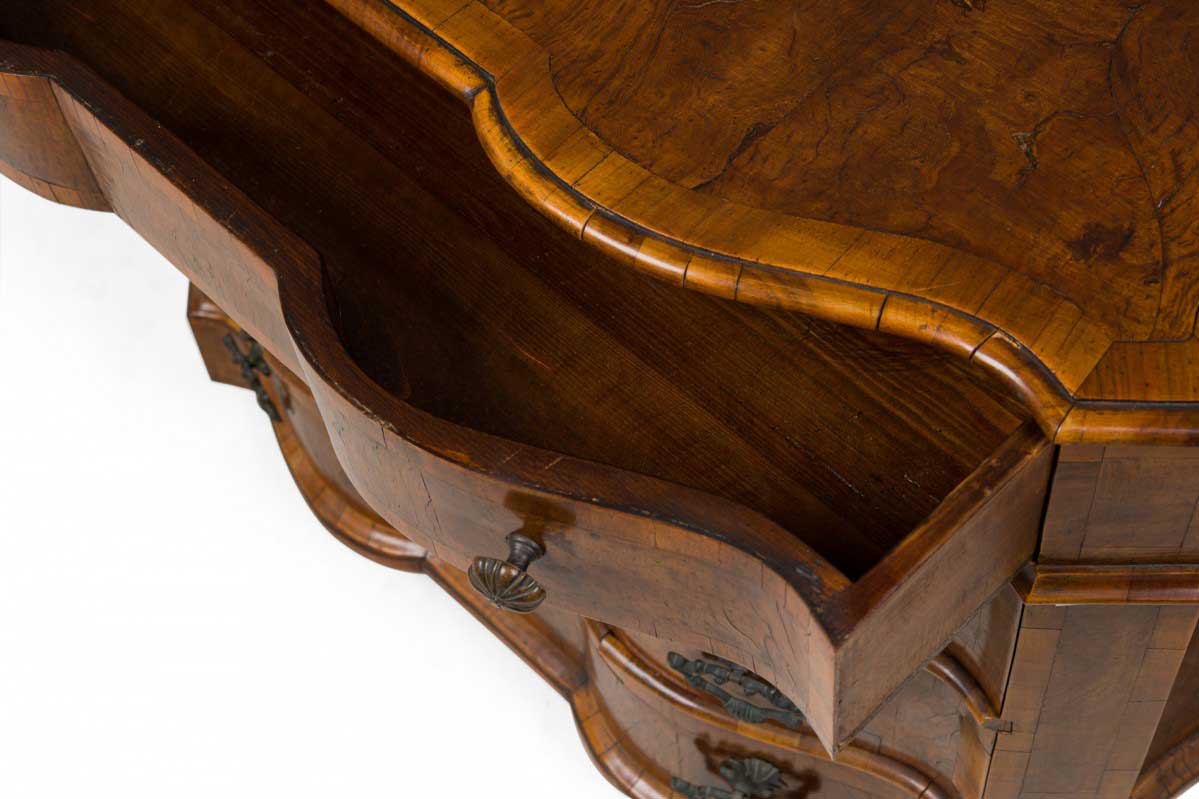 Italian Venetian Serpentine Olivewood and Bronze Mounted 4 Drawer Commode / Chest