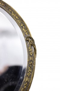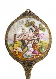 Italian Venetian Style Brass and Porcelain Hand Mirror