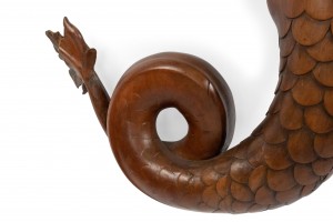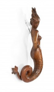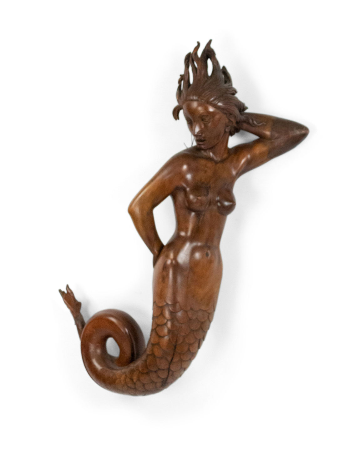 Italian grotto (1920s) stripped wood wall plaque of a mermaid figure.