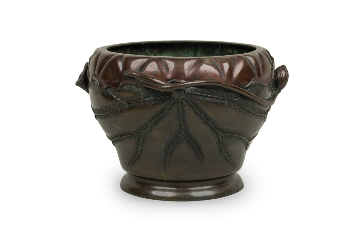 Japanese Bronze Bamboo Relief Jardiniere