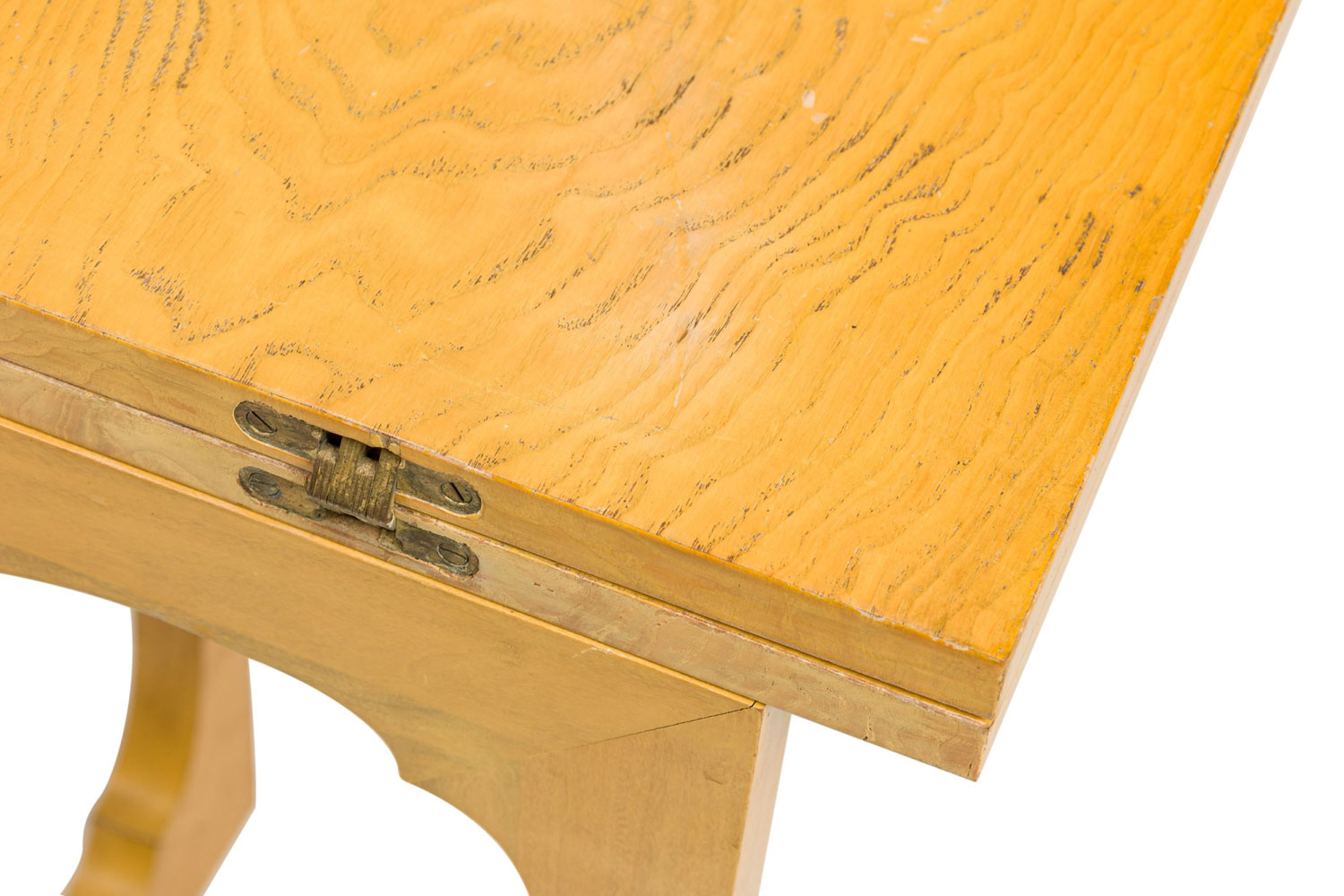 American Mid-Century Maple Custom "Flip Flop" Console Table with drop leaf sides supported by oval cut out moveable panels