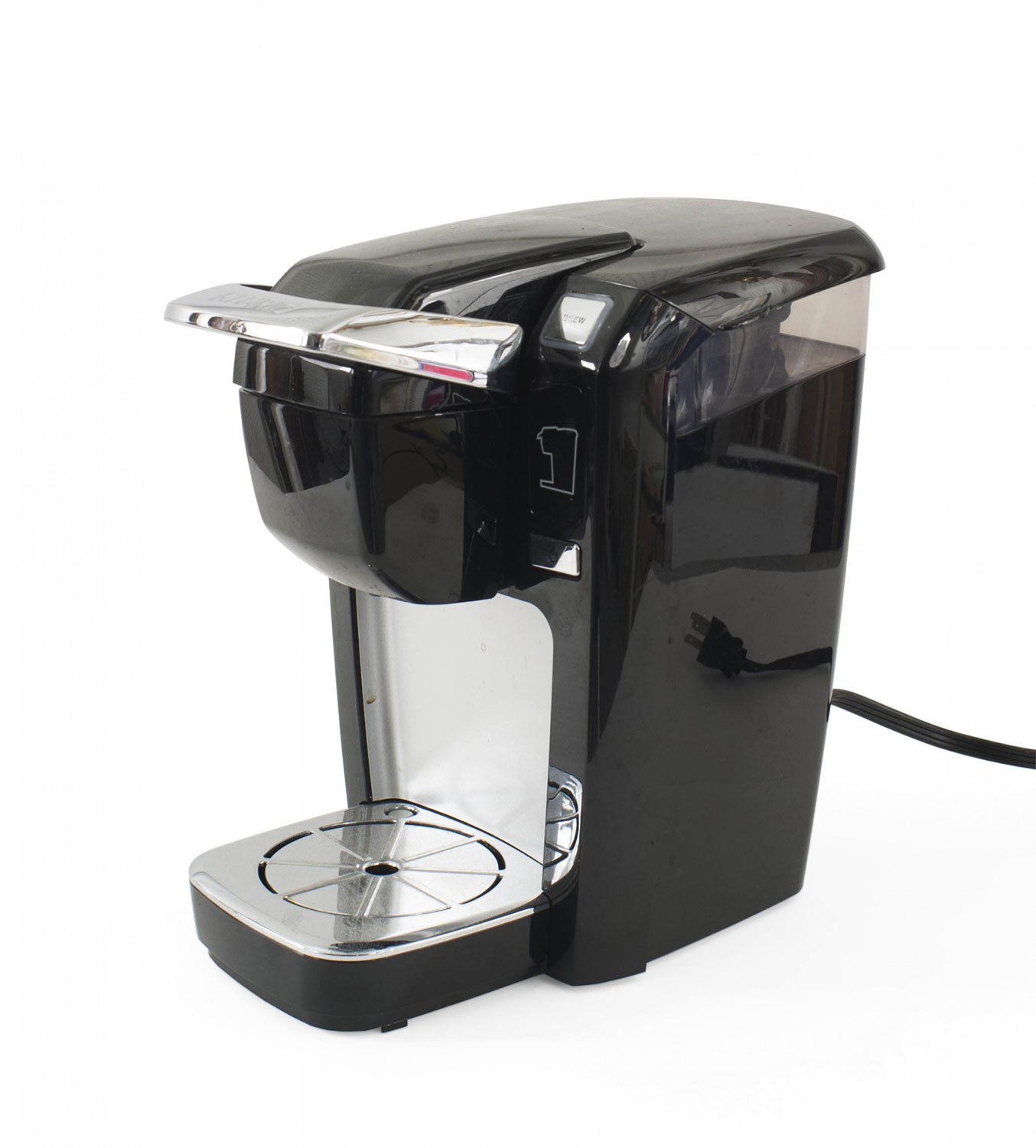 Keurig single-cup coffee maker in black plastic with chrome accents (non-working)