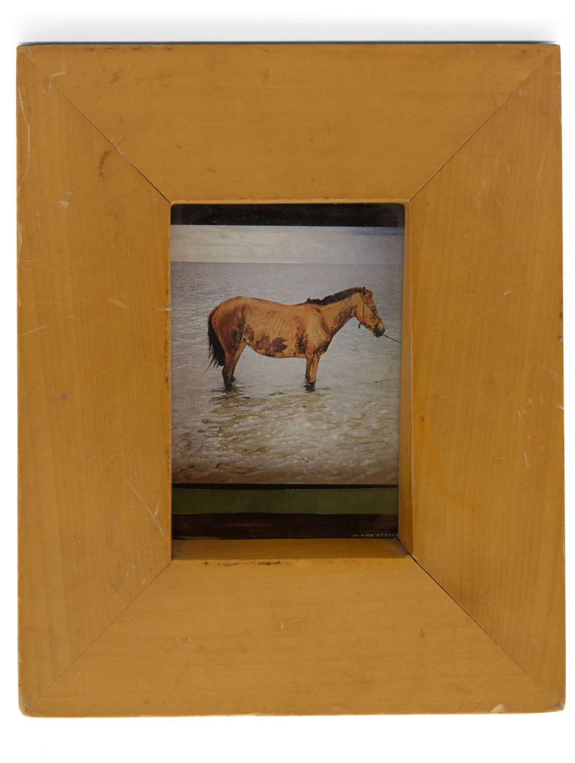 Rectangular light-colored wood frame with a thick base narrowing to the top