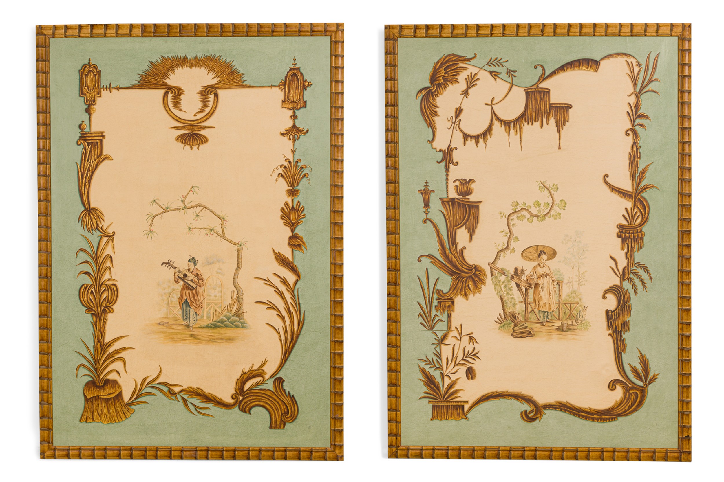 Choose one of the options below.Louis XV Oil Celadon Chinoiserie Genre Scenes
