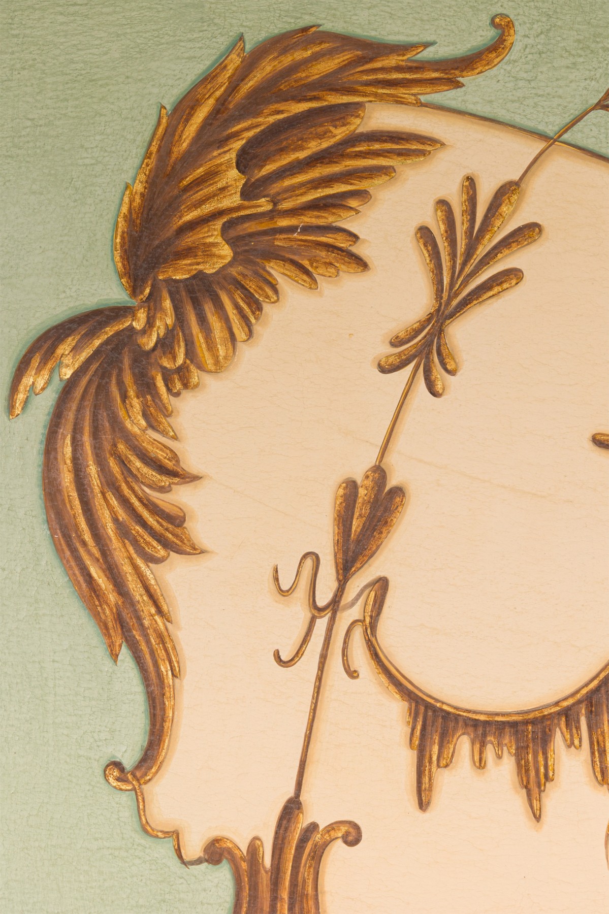 French Louis XV style (20th Century) oil on canvas celadon painting of Chinoiserie genre scenes in the style of Jean Pillement. (see also similar PAIR: #059054B and narrlor pari #059118 )