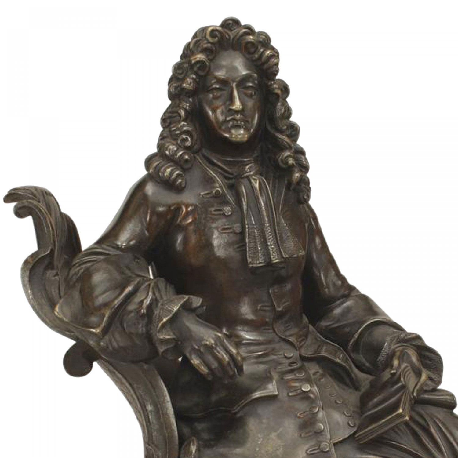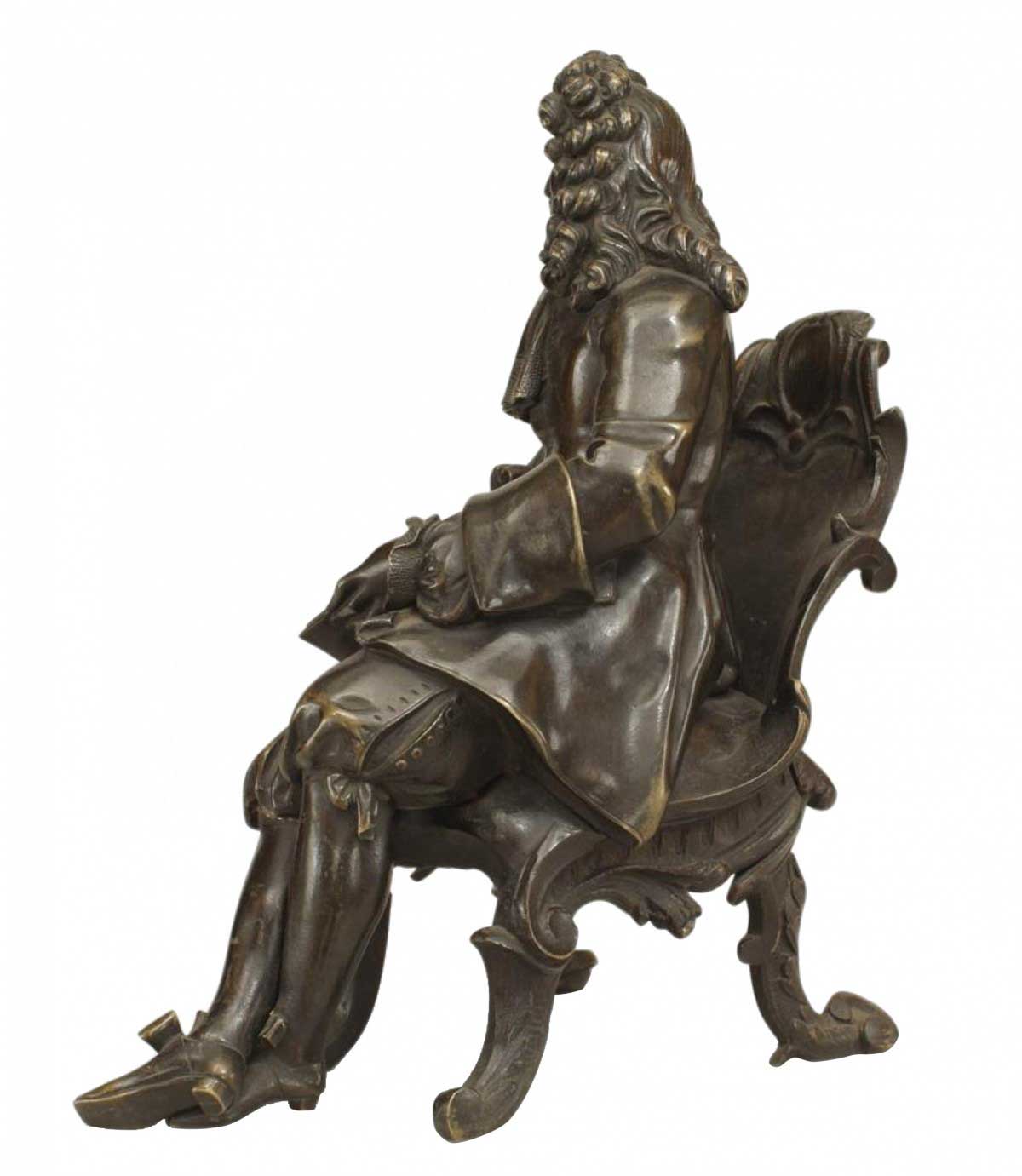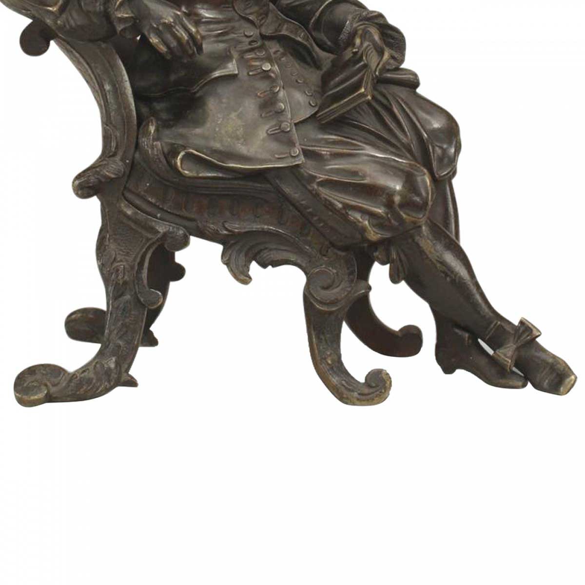 French Louis XV style (19th Cent) bronze of 18th Century figure sitting in rococo style chair holding a book