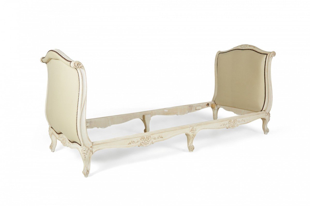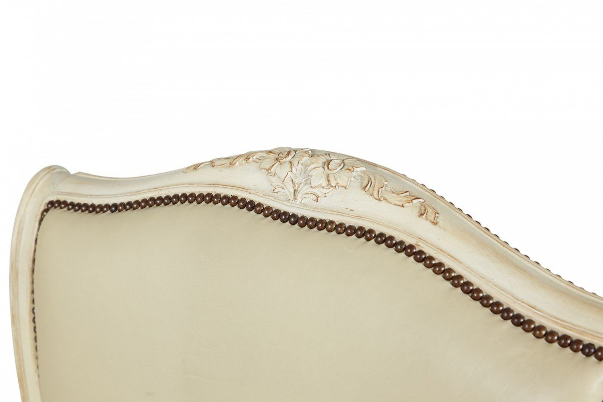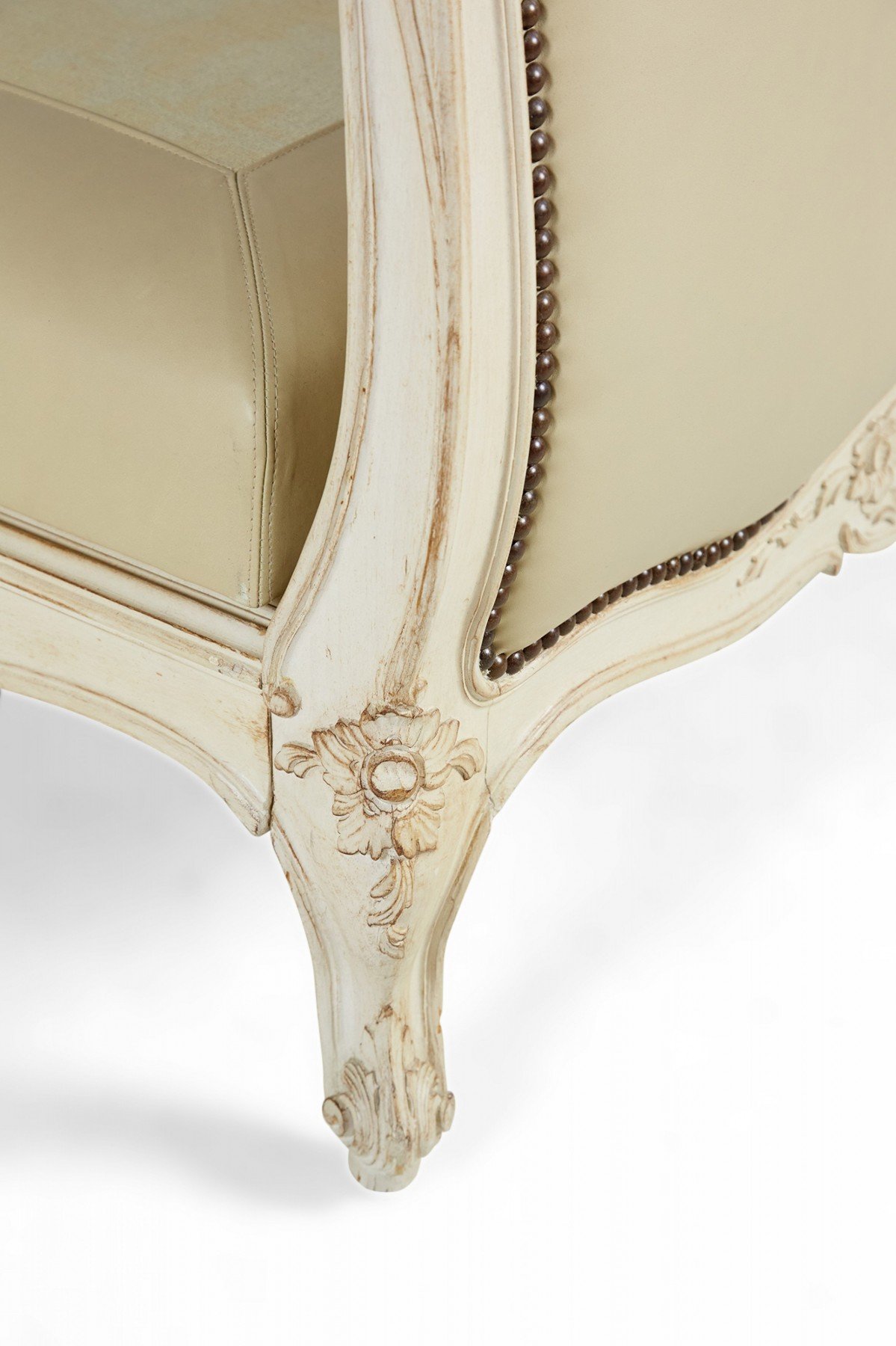 French Louis XV-Style Beige Wooden Leather Upholstered Daybed