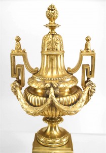 Pair of Louis XVI Bronze Urn Festoon Andirons