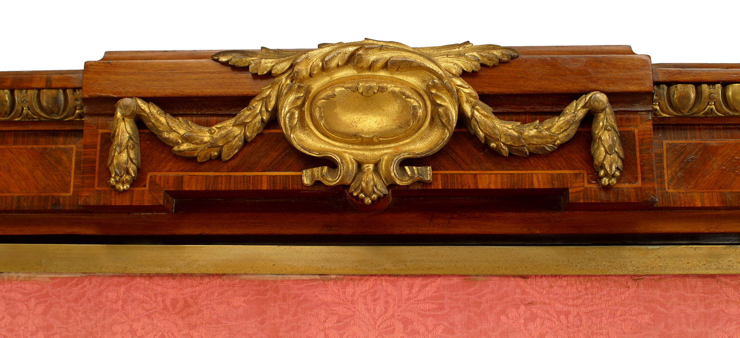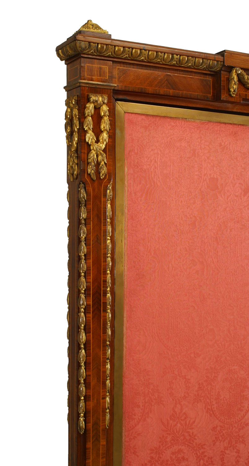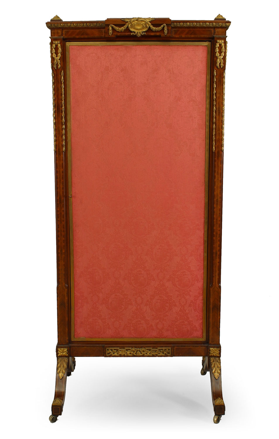 French Louis XVI-style (19th Century) kingwood inlaid three-way (triptych) cheval mirror with bronze trim.