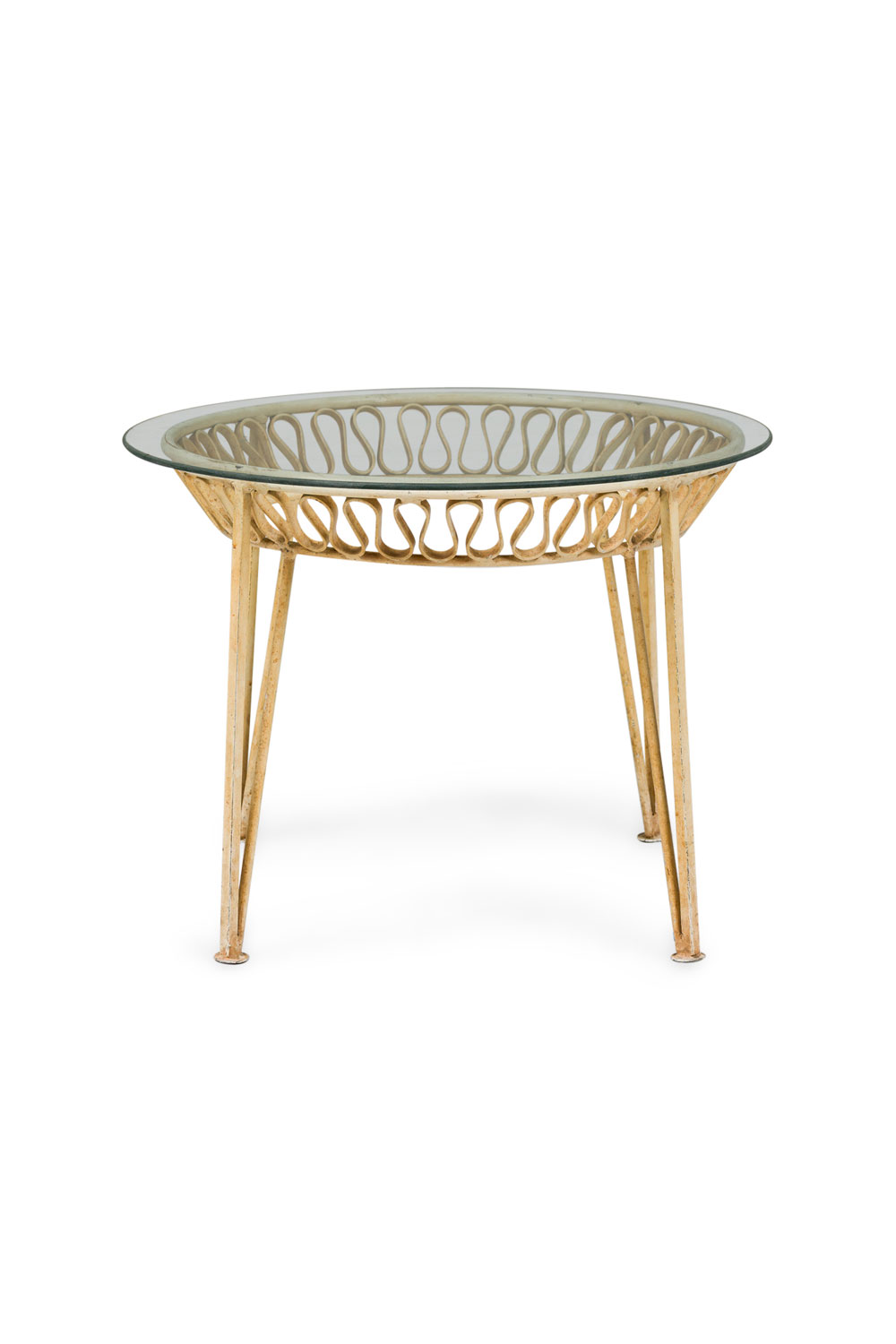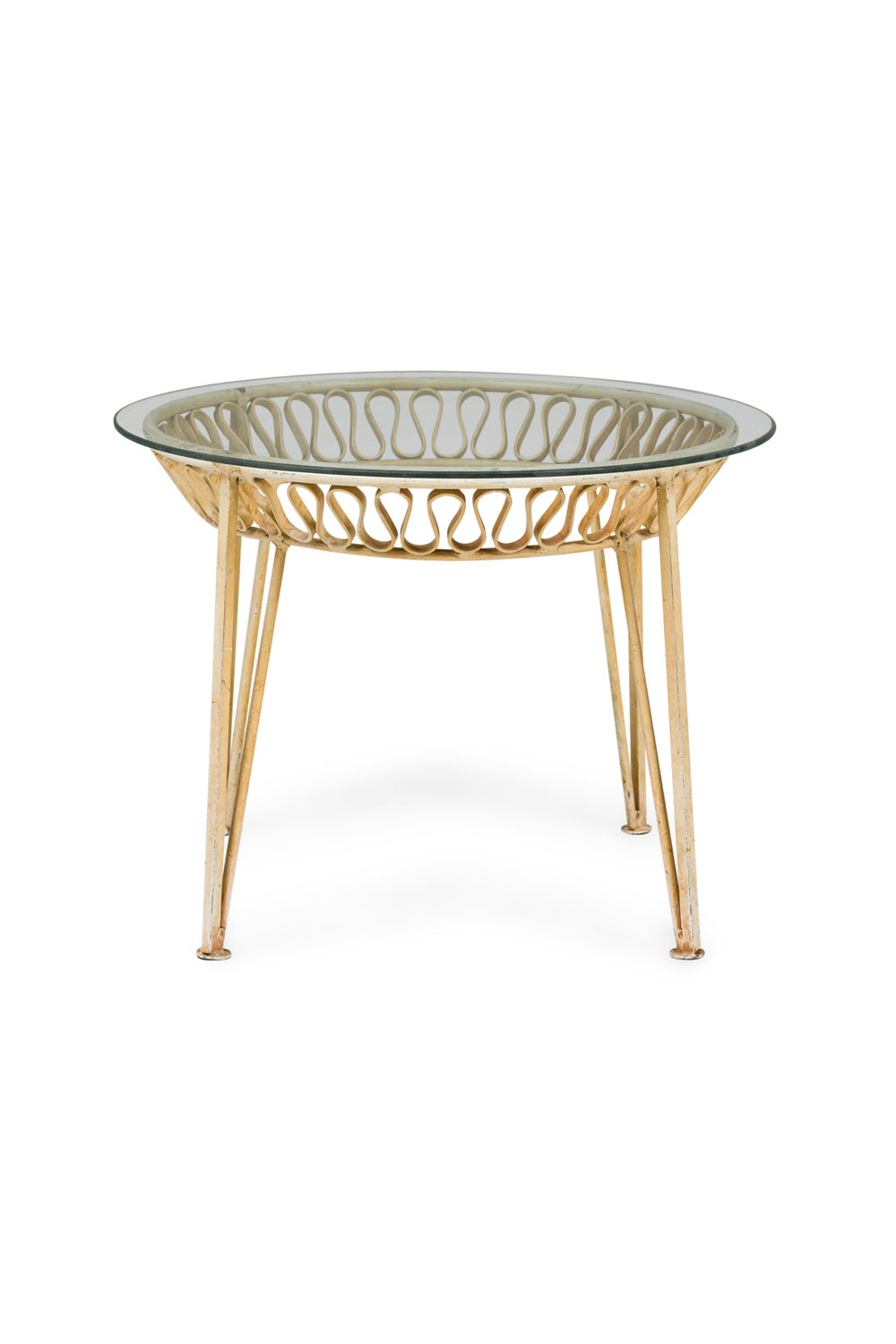Mid-Century Circular White Metal "Ribbon" Occasional Table